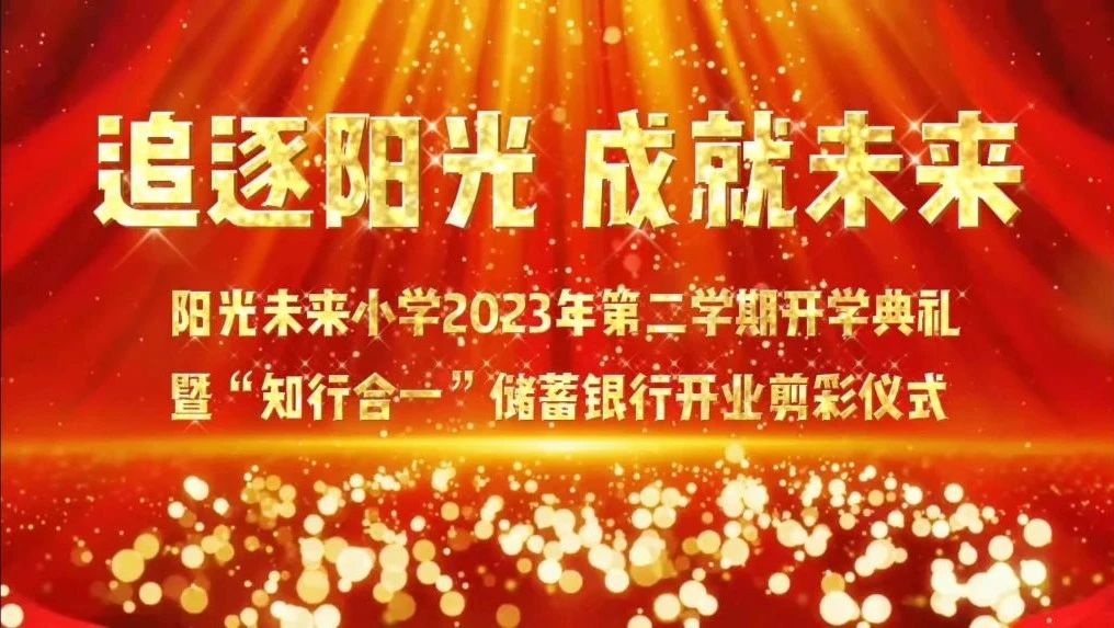 滿載著喜悅與祝福,懷揣著憧憬和夢想,2023年2月13日上午,陽光未來小學(xué)舉行了2022—2023學(xué)年度第二學(xué)期“開學(xué)典禮暨'知行合一’好習(xí)慣儲蓄銀行開業(yè)剪彩儀式”,共同開啟新學(xué)期最美篇章!