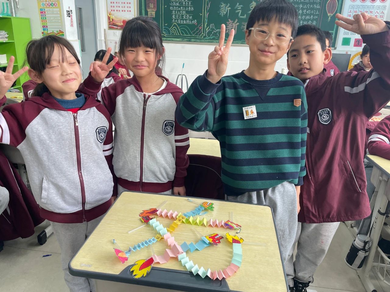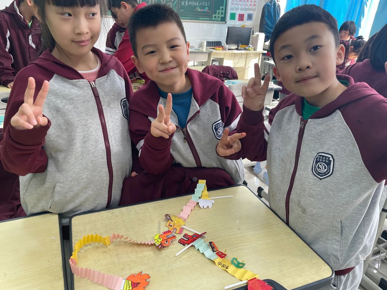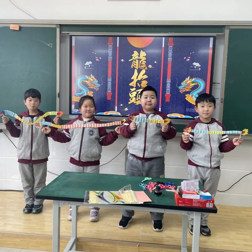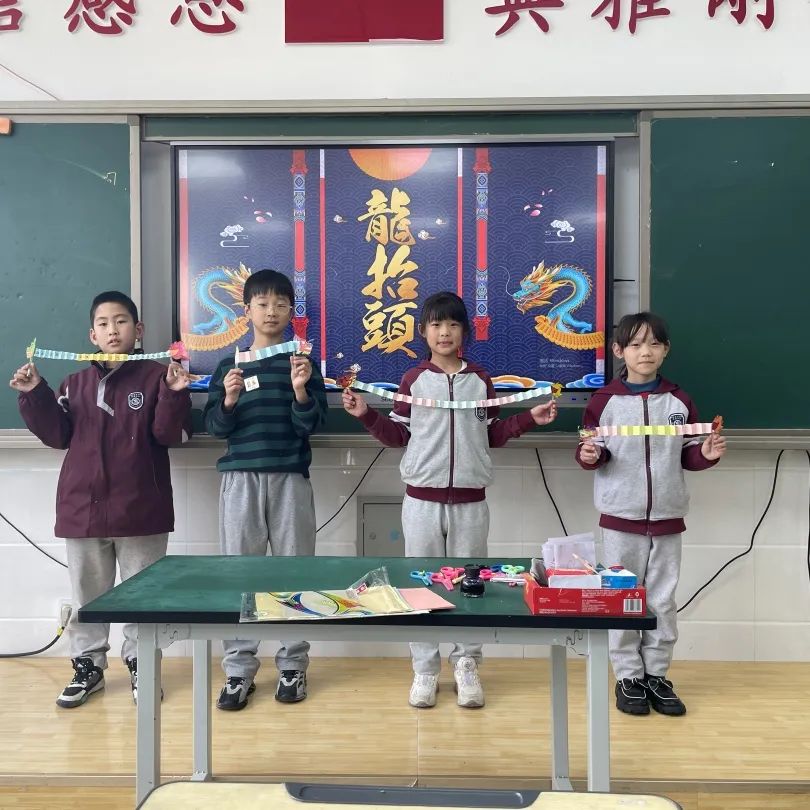 龍?zhí)ь^ 好兆頭 龍是神話里生活于大海中的神異生物,司掌行云布雨,常用來象征祥瑞,自古以來,人們在仲春“龍?zhí)ь^”這天敬龍慶賀,以祈龍消災(zāi)賜福,風(fēng)調(diào)雨順、五谷豐登。三年二班的同學(xué)們,發(fā)起了手工制作舞龍活動,一起來看看他們的作品吧!