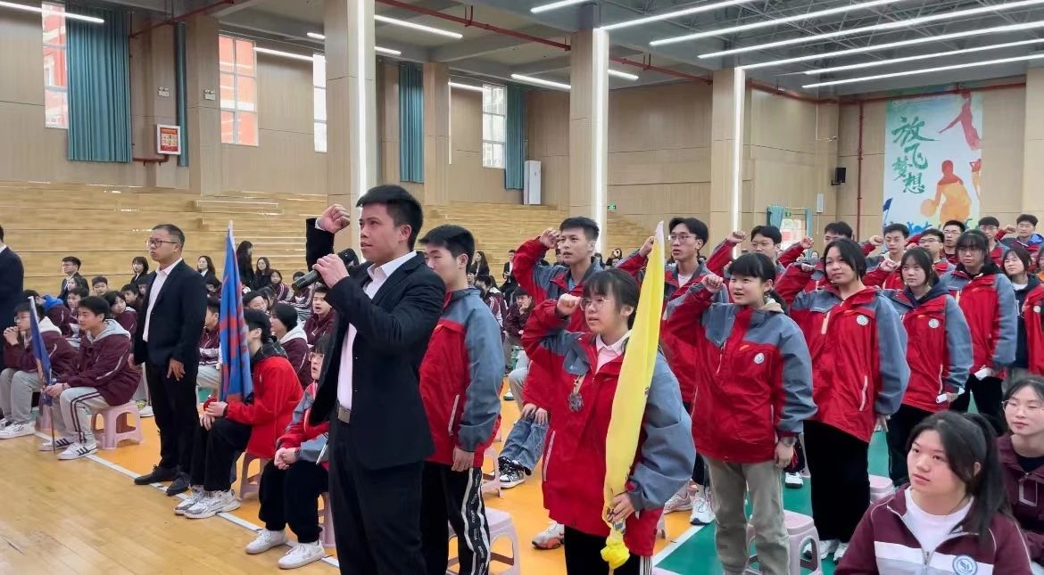 903班 百煉成鋼,百目流芳;吾戰(zhàn)百天,逐鹿考場,苦戰(zhàn)百天,發(fā)憤圖強;惜時如金,效率至上,全力以赴,斗志昂揚;三班最強,三班最強,三班最強! 各班依次宣誓,為畢業(yè)班的學(xué)生們加油打氣,用自己嗓音釋放出自身的力量。