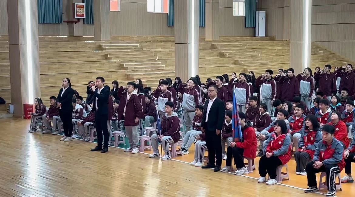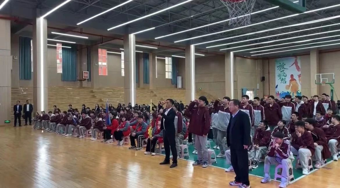 “青青園中葵,朝露待日晞”。時間的沙漏,像春風(fēng)拂面般悄然而逝,穿梭的日月進入最后一百天的倒計時。音樂響起,各班同學(xué)邁著昂揚的步伐,懷揣對未來美好的憧憬走過成功門,他們心中有夢、眼中有光、行中有力、腳下有遠方。 大會第一項:奏響國歌、師生同唱 少年何妨夢摘星,敢挽桑弓射玉衡。 激昂的旋律,鏗鏘的曲調(diào),堅毅的身影,他們是青春最美的樣子。