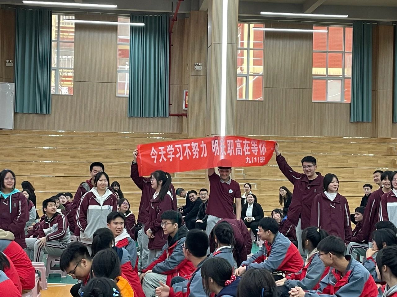 大會第二項:優(yōu)秀學(xué)長發(fā)言 我們將以優(yōu)異的中考成績續(xù)寫母校榮光。 百煉成鋼,百日流芳,讓我們苦戰(zhàn)百天,逐鹿考場。 請母校放心,請老師放心,請家長放心! 我們正信心百倍,斗志昂揚,意氣風(fēng)發(fā),誓創(chuàng)輝煌!
