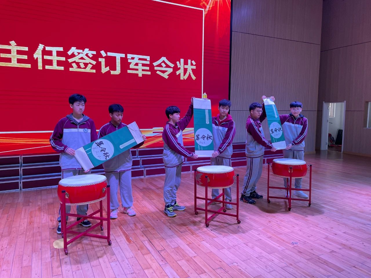 大會第七項:班主任簽訂軍令狀 親愛的同學(xué)們,在我們的生命里,總有那么一群人,為你們的進步而喜悅,為你們的落后而焦慮,為你們的成長保駕護航,他們!和父母一樣的愛你們,他們!和朋友一樣的陪伴你們,他們!一樣期待你們蟾宮摘桂、金榜題名,他們的名字是:老師! 你們聽,暖心傾訴是濃郁的殷切期盼,錚錚誓言是赤誠的教育初心,每一句話語,都是滾燙的為民承諾,更是永恒的使命擔(dān)當(dāng)。 中考是一場沒有硝煙的戰(zhàn)爭,容不得我們有一絲遲疑,面對中考,我們要信心百倍,百折不撓,接下來請班主任代表同學(xué)們簽下勝利的軍令狀!
