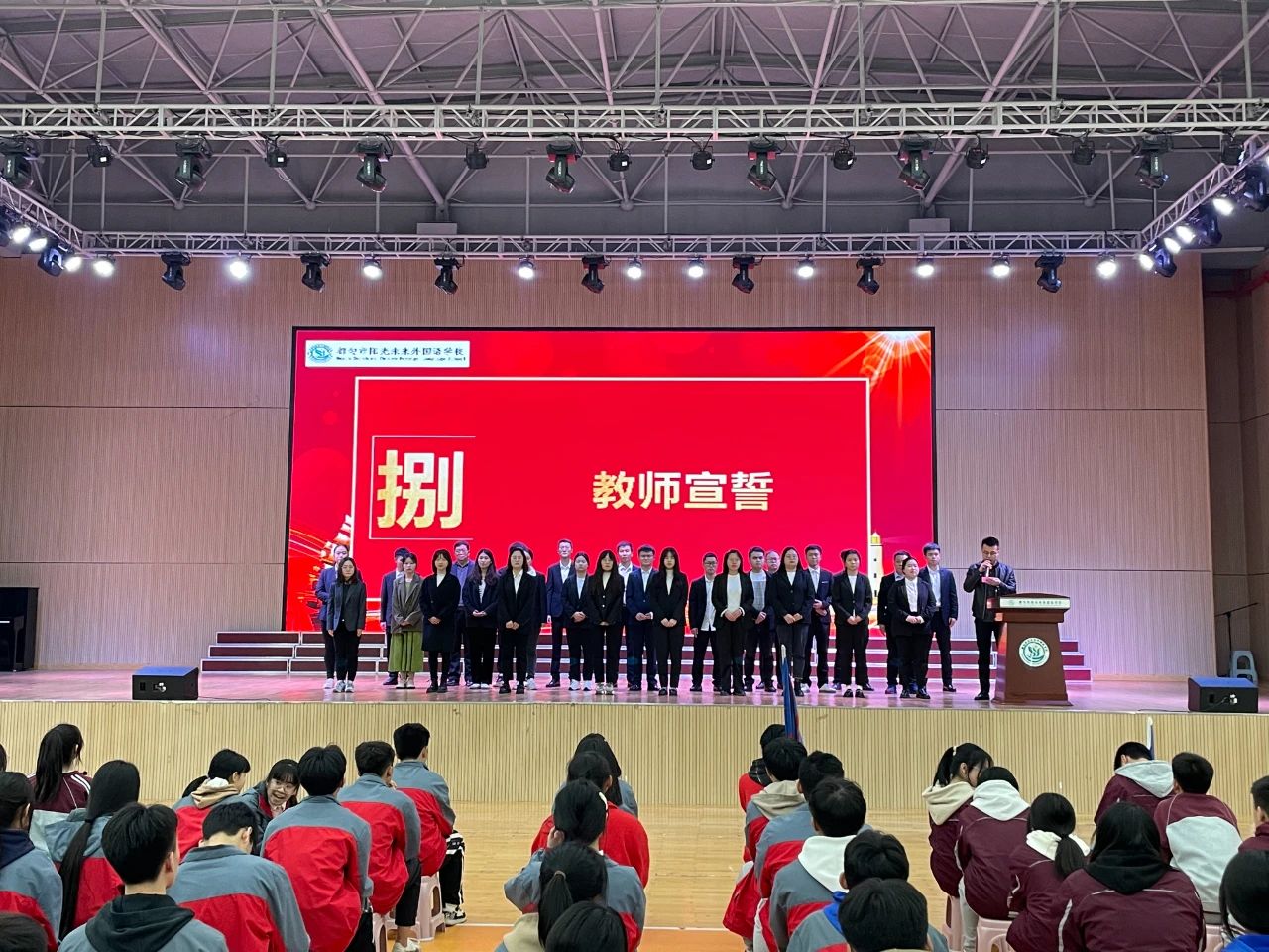 大會第五項:學(xué)生宣誓 愿我們的青春永不迷茫,追隨光,成為光。愿我們?nèi)松厝A,堅行航,無懼歲月悠長! 鮮衣怒馬,惟我少年之氣憾山河;破浪長風(fēng),獨我少年之志凌長空。眺萬里江山,乘浮云摘星攬月;望千丈壁崖,踏巨浪揚帆起航!