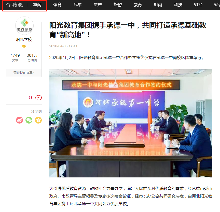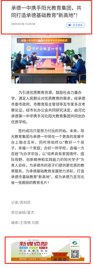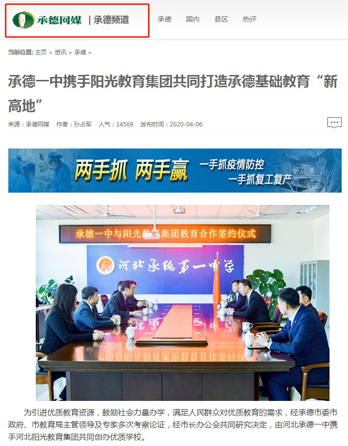 高權(quán)重媒體的集體發(fā)聲,賦予了此次簽約儀式更深遠的影響力。相信在承德市委市政府、承德市教育局的支持下,在社會各界的關(guān)注下,在陽光教育集團和承德一中的傾力合作下,承德陽光未來實驗學(xué)校會成為一所綜合管理一流、師資隊伍一流、校園環(huán)境一流、教學(xué)設(shè)施一流、教學(xué)成績一流的優(yōu)質(zhì)學(xué)校,成為一所社會贊譽、百姓信賴、學(xué)生喜愛的好學(xué)校!