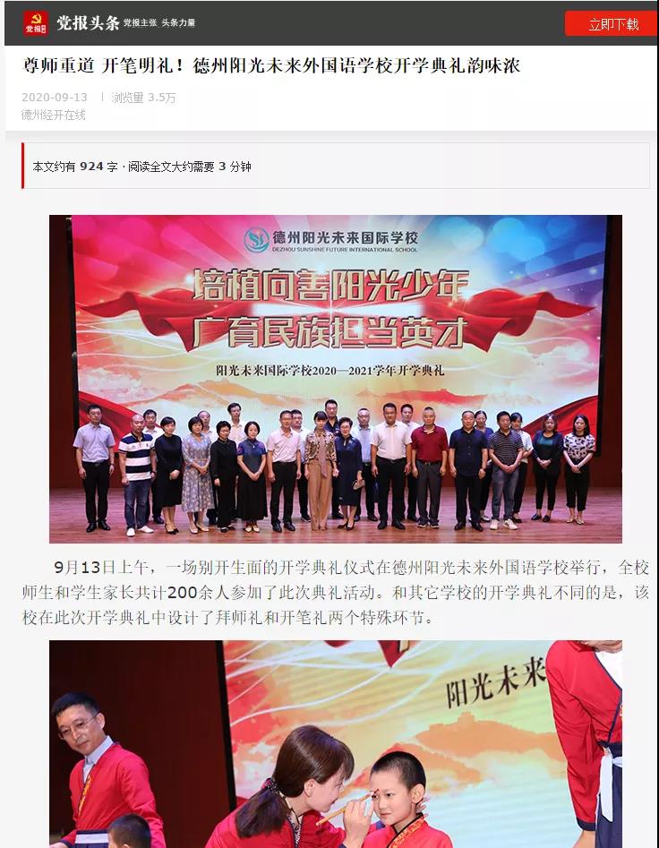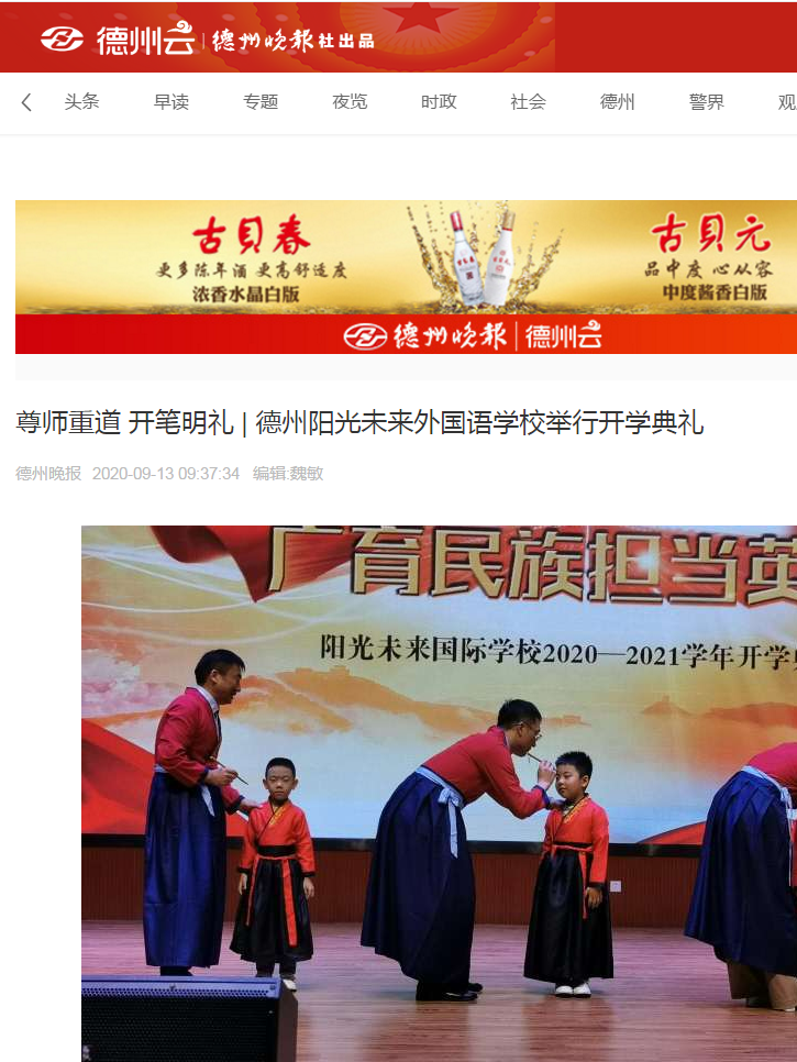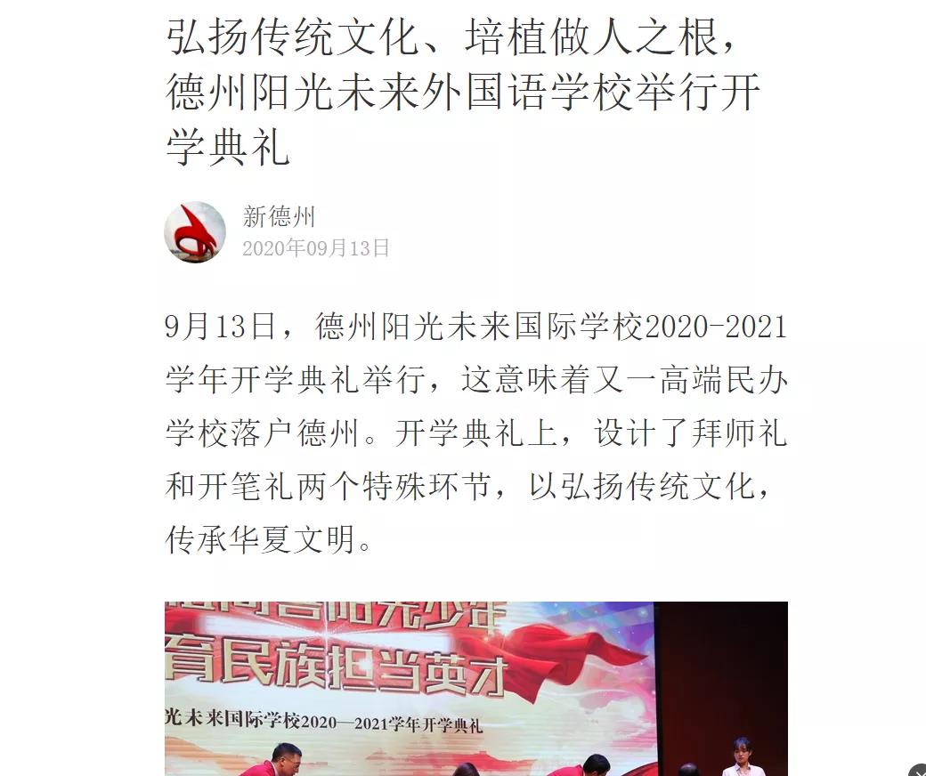 德州日?qǐng)?bào):尊師重道 開(kāi)筆明禮!德州陽(yáng)光未來(lái)外國(guó)語(yǔ)學(xué)校開(kāi)學(xué)典禮韻味濃