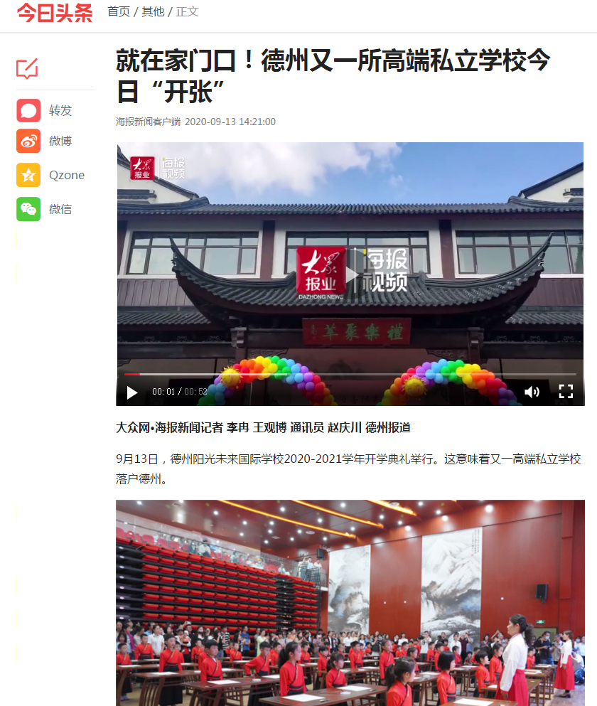 大眾網(wǎng):陽(yáng)光未來(lái)國(guó)際學(xué)校——又一所高端私立學(xué)校落戶德州