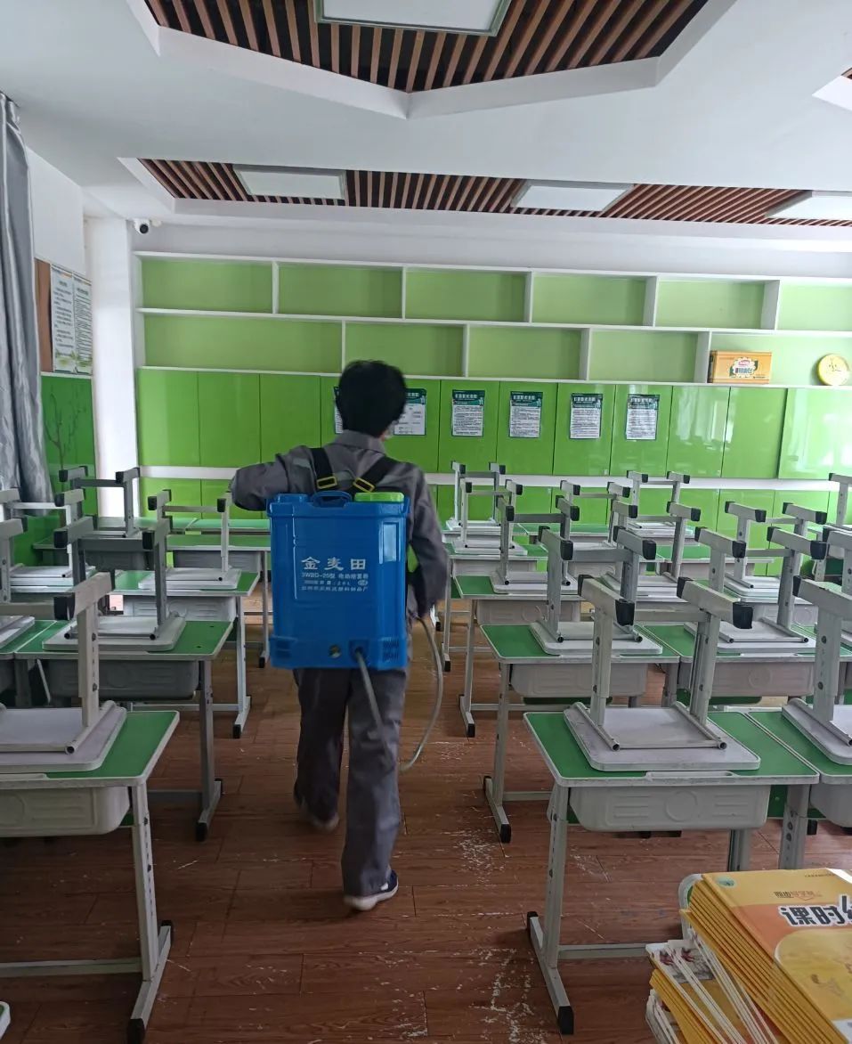 校園全面消殺 為確保師生身體健康和生命安全,學(xué)校安排后勤人員對校園進(jìn)行了全面消殺,為迎接全面復(fù)學(xué)做好準(zhǔn)備。