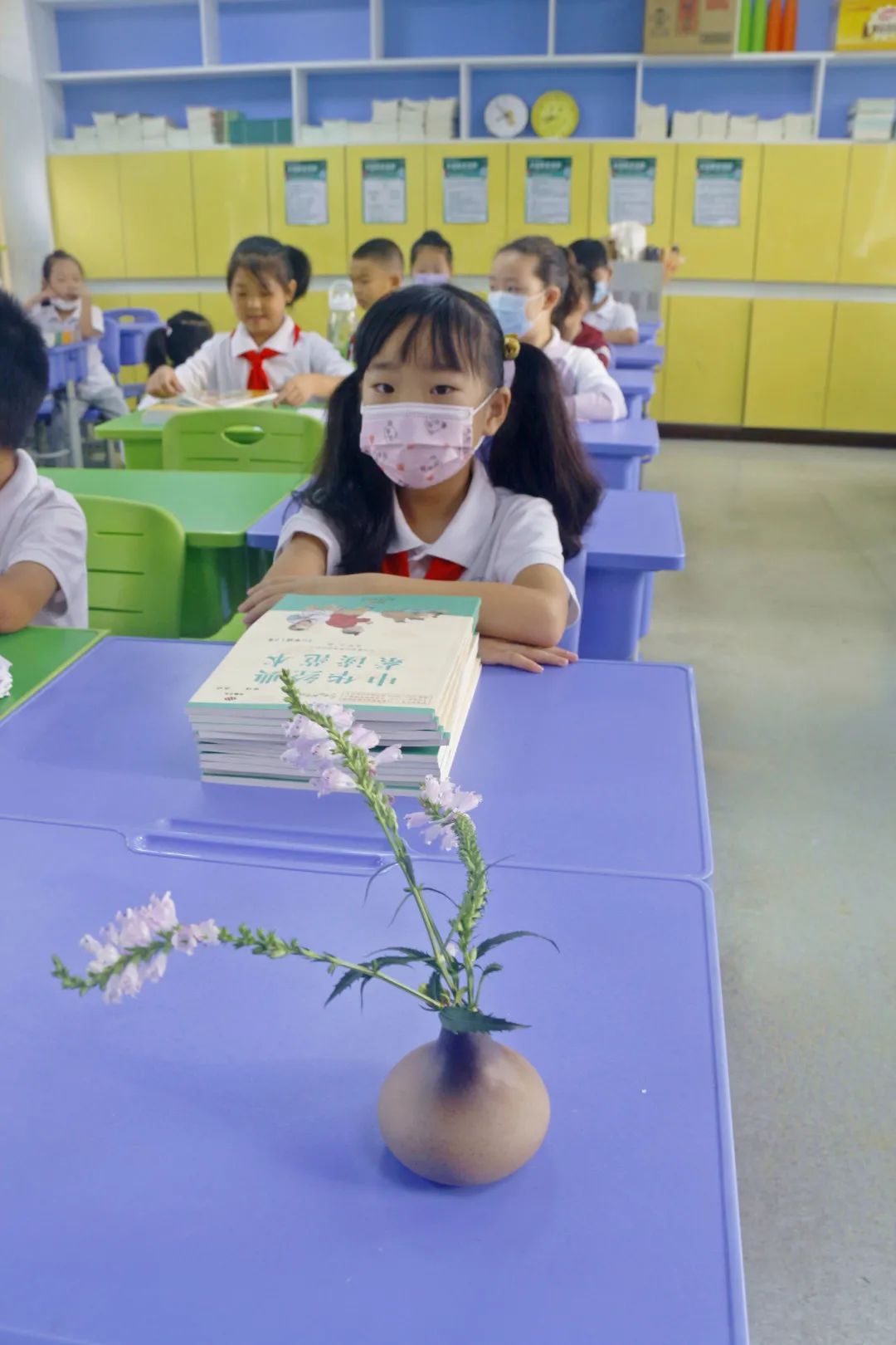 新學(xué)期學(xué)生給老師帶的鮮花,雖然小小的但是為教室增添了一點生機。