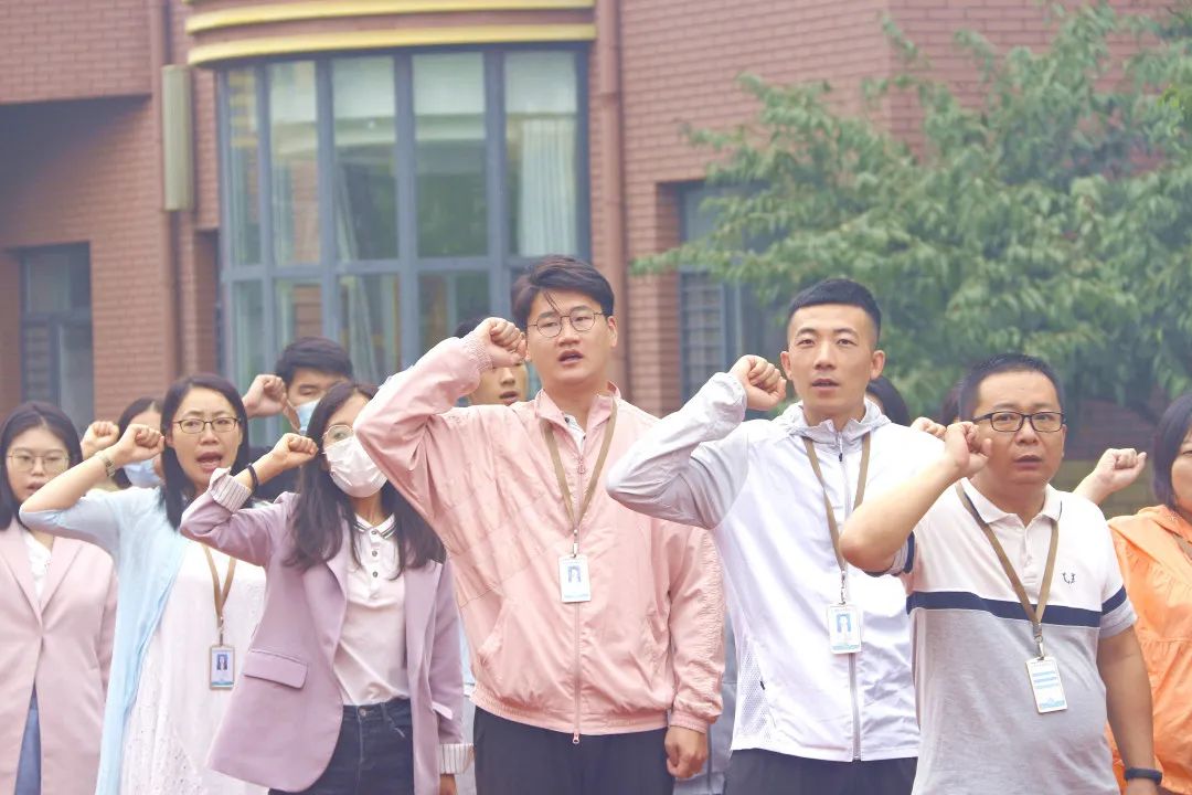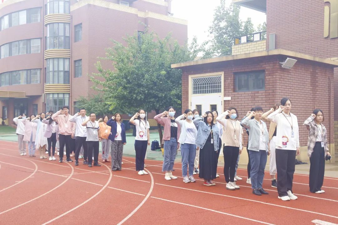 宣誓 史玉芳老師帶領(lǐng)全體教師進行國旗下宣誓:師者, 當敬畏、尊重、仰望每一個生命,用生命傳遞生命,用靈魂喚醒靈魂,用人格塑造人格。師者,當基于每一個生命,發(fā)展每一個生命,成就每一個生命,讓每一個生命靈動飛揚。