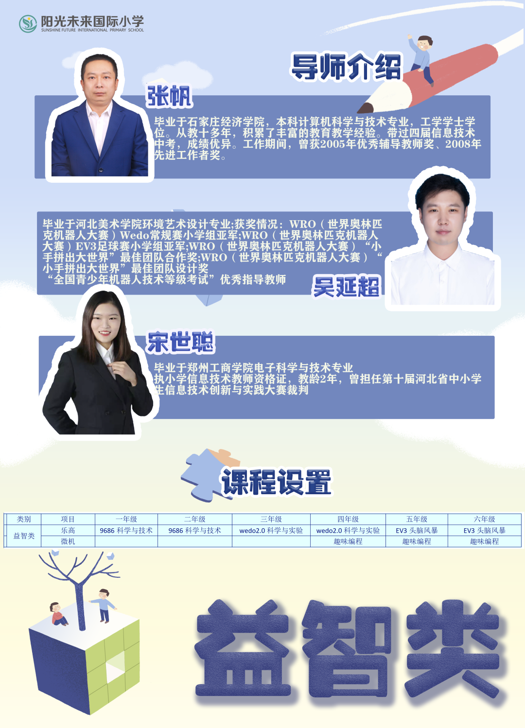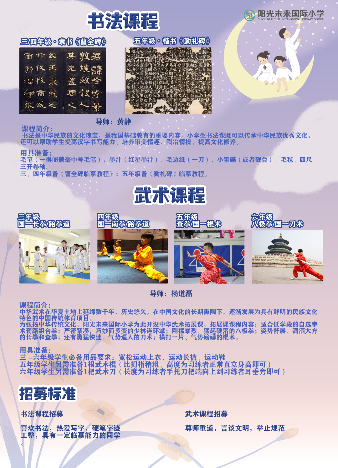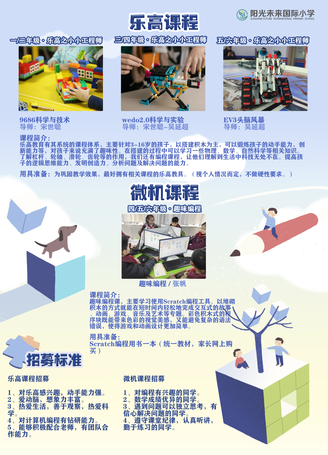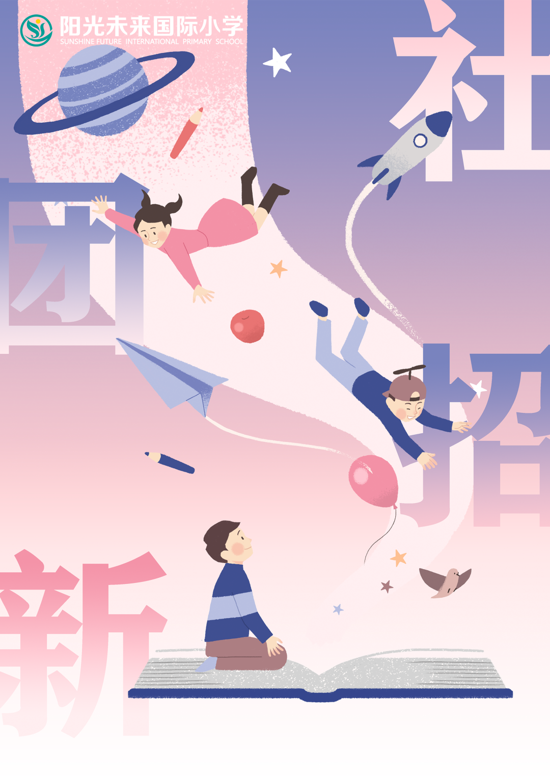 新社團納新 2021年9月7日-9月9日 陽光未來國際小學 9.7日上午多功能廳 一場社團文化的饕餮盛宴 興趣和愛好的完美結合 如果你是個熱愛校園生活的人 如果你想要發(fā)展自己的愛好 那就趕快加入吧 在這里 飛揚的青春承載美麗的夢想 搭建成絢麗的舞臺 你會在這成為一顆冉冉升起的“校園之星”