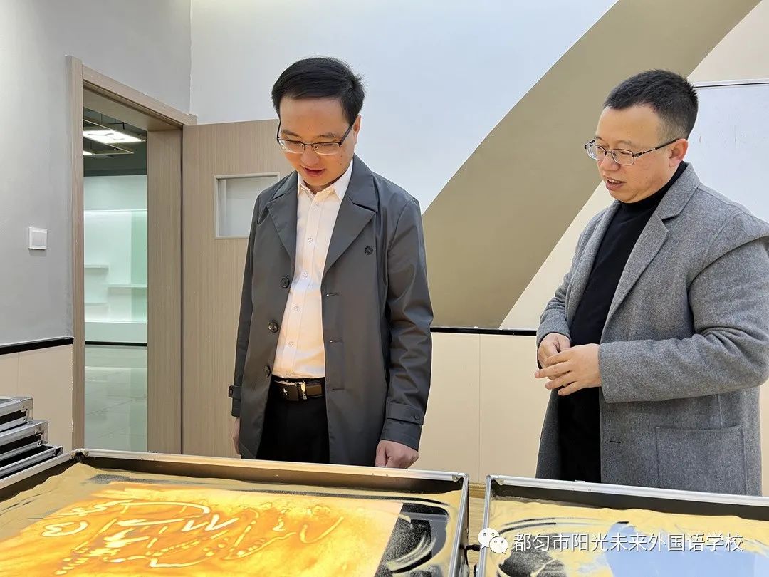 向順局長(zhǎng)通過(guò)聽(tīng)取匯報(bào)、實(shí)地查看,對(duì)學(xué)校各項(xiàng)工作給予高度肯定,希望我校在下一步的工作中要深入領(lǐng)會(huì)把握黨和國(guó)家的教育政策,把黨的教育方針和社會(huì)主義核心價(jià)值觀融入到課程設(shè)置中,做到全校師生入腦入心;加強(qiáng)學(xué)校黨建工作,迅速建立黨支部,發(fā)揮黨建引領(lǐng)作用;校園安全方面,要常態(tài)化抓好疫情防控和校園安全、學(xué)校食堂食品安全,由于地理位置的特殊性,要加大安全標(biāo)識(shí),加強(qiáng)問(wèn)題排查,做到及時(shí)處置。向順局長(zhǎng)希望,我校充分發(fā)揮集團(tuán)優(yōu)質(zhì)教育資源優(yōu)勢(shì),持續(xù)提升辦學(xué)質(zhì)量和內(nèi)涵,不斷將學(xué)校推向更高的發(fā)展層次,把陽(yáng)光教育品牌打造得更亮更響,為促進(jìn)都勻教育事業(yè)蓬勃發(fā)展貢獻(xiàn)力量。