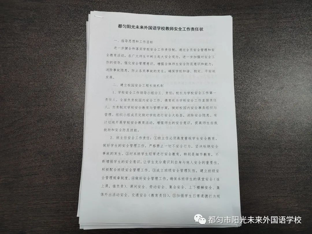 最后,各學(xué)部班主任老師與學(xué)校簽訂了學(xué)校教師安全工作責(zé)任狀。