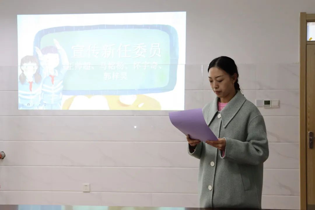 楊楊老師和周野老師宣讀就職名單以及各部門的工作安排