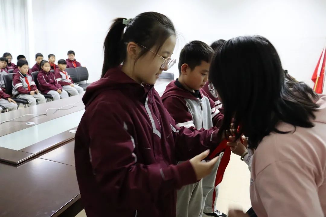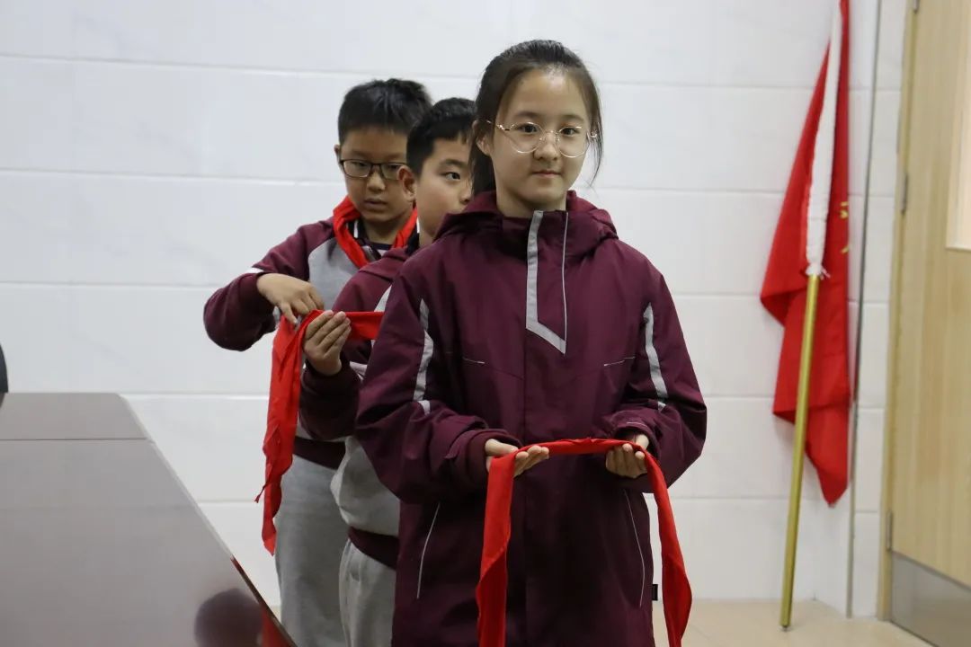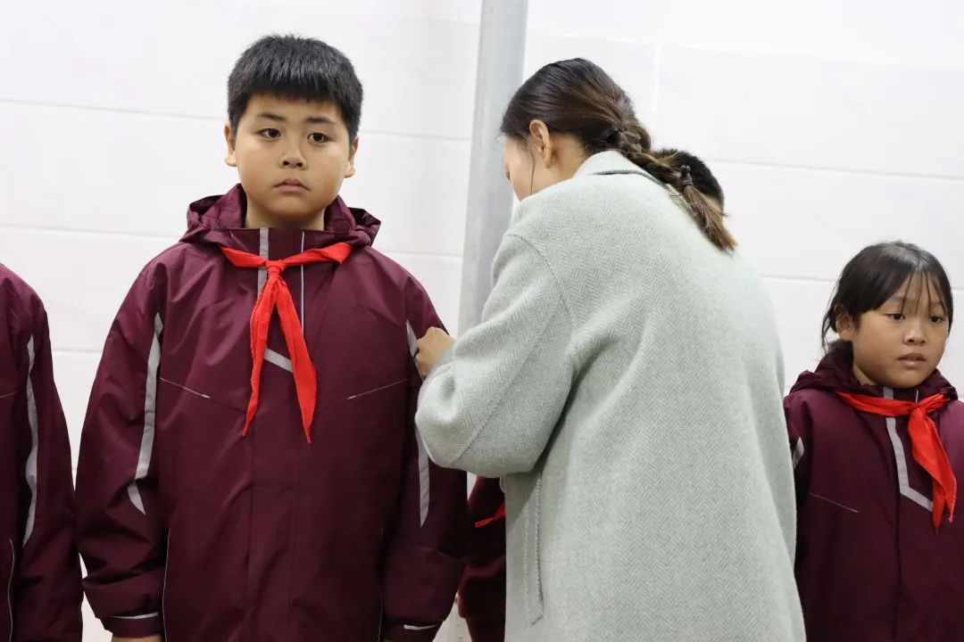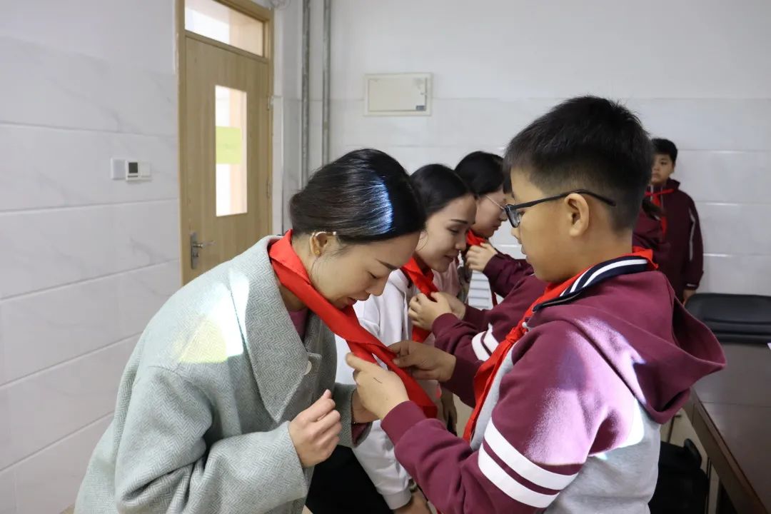張池、高紹涵、懷宇奇三位同學為老師們獻紅領巾
