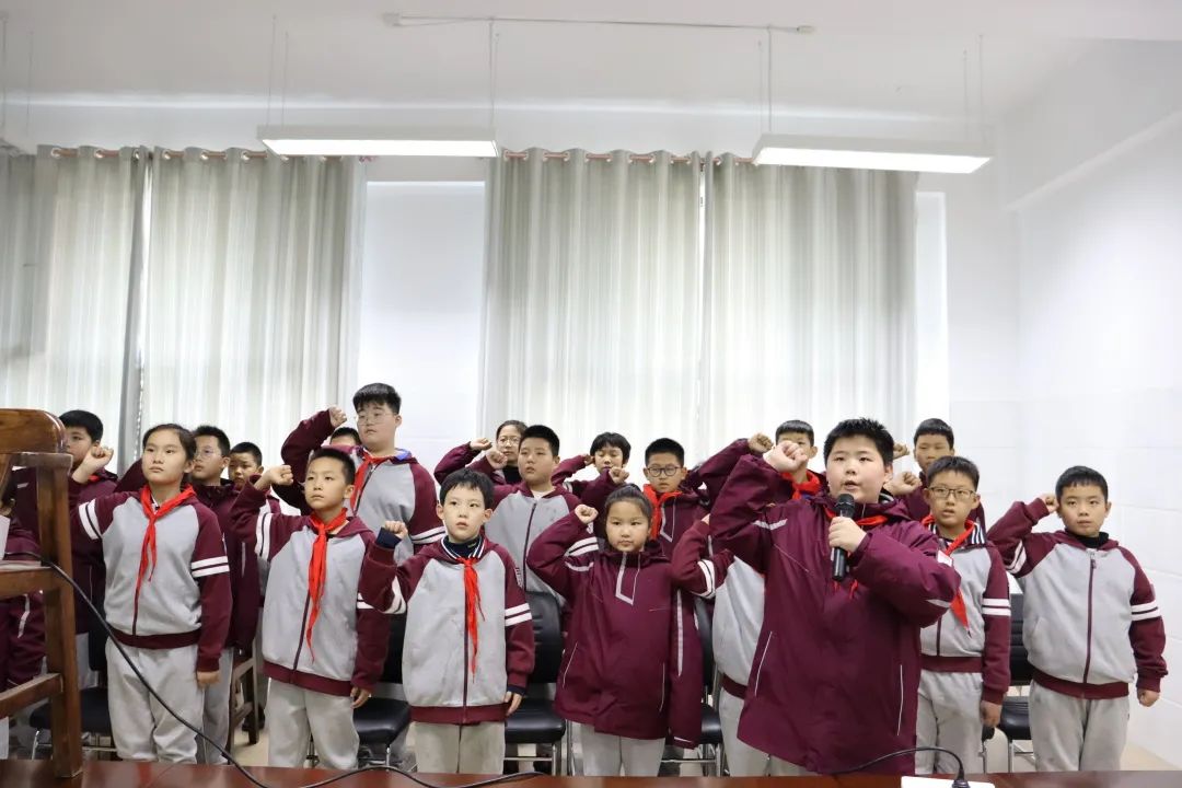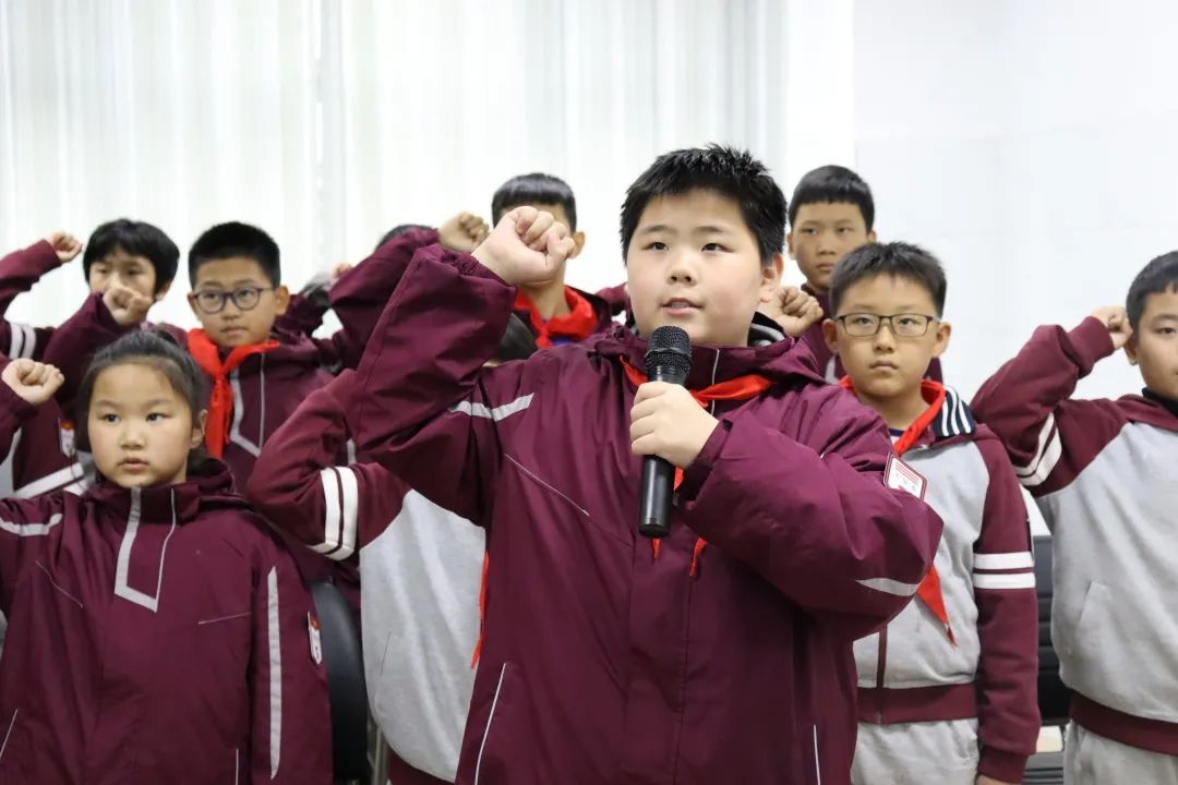 大隊長劉進豪帶領全體隊員宣言 少先隊員莊嚴宣誓 我是中國少年先鋒隊隊員,我在隊旗下宣誓:我熱愛中國共產(chǎn)黨,熱愛祖國,熱愛人民,好好學習,好好鍛煉,準備著:為共產(chǎn)主義事業(yè)貢獻力量!時刻準備著!
