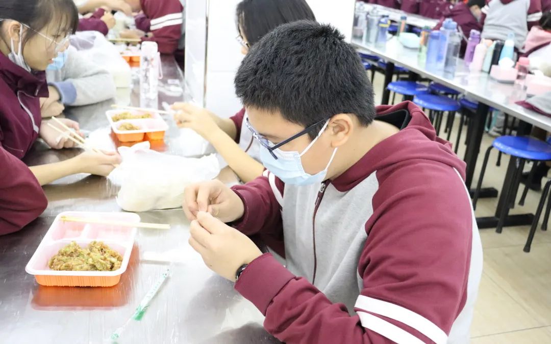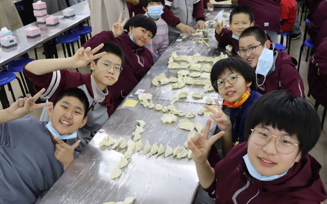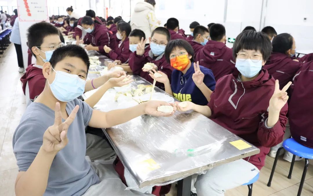 “包完了,包完了!可以下餃子啦!”不一會(huì)兒功夫,熱氣騰騰的餃子擺在了大家的面前。一時(shí)間,餃子的香味在空氣中彌漫,同學(xué)們看得眼睛都直了,爭(zhēng)先恐后的排隊(duì)打餃子。 孩子們吃著自己包的餃子,甚是開(kāi)心,滿(mǎn)滿(mǎn)的成就感。不僅僅是因?yàn)樵诤盏降囊环轀嘏亩Y物,更是因?yàn)樵诨顒?dòng)中體會(huì)到了與同學(xué)朋友一起勞作的幸福感與歸屬感。最后,十分感謝餐廳的所有員工對(duì)本次活動(dòng)的配合。