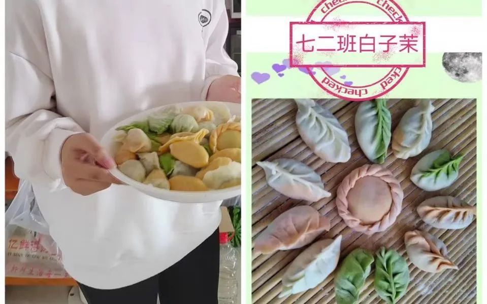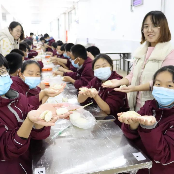 老師們經(jīng)驗(yàn)豐富,手指靈巧,不一會(huì)兒,漂亮的餃子便出現(xiàn)了。班主任們也沒(méi)閑著,他們指導(dǎo)同學(xué)們要怎么包餃子,避免晚餐要吃片兒湯~