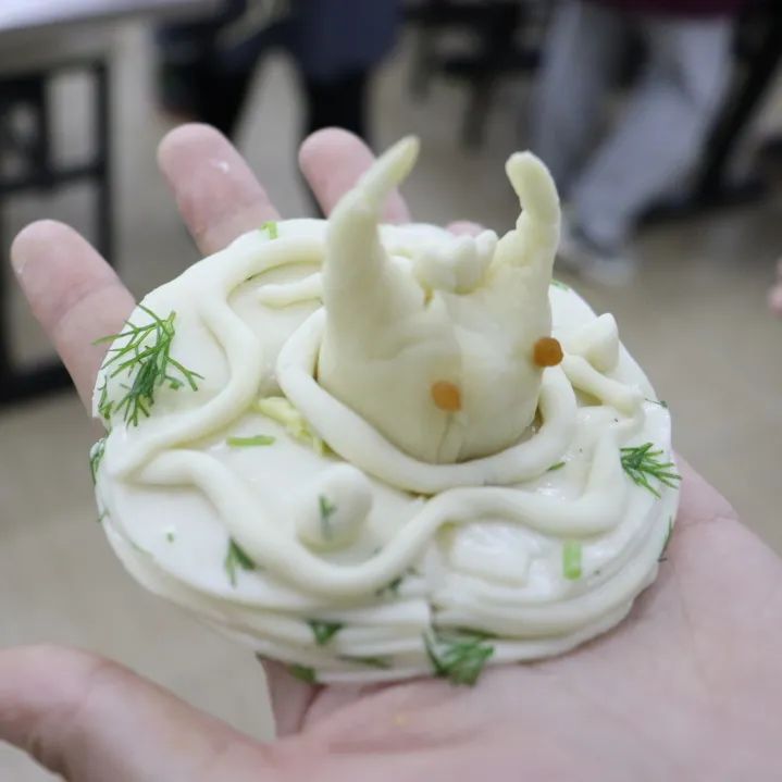 不一會(huì)兒,一張張面皮,一團(tuán)團(tuán)香餡,在同學(xué)們的巧手下變成了各具特色的餃子。有的褶皺工整好看,一看就是“老手”包的,還有一些班級(jí)包出來(lái)的五花八門(mén),有圓的,有長(zhǎng)的,有尖的,有扁的,千奇百怪。