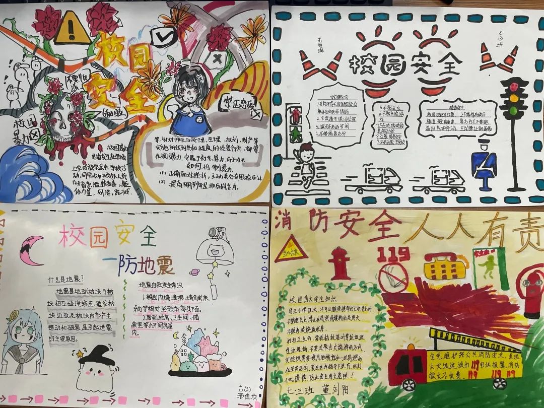校園安全月手抄報(bào) 為了提高同學(xué)們的自我保護(hù)意識(shí),營(yíng)造安全和諧的良好校園氛圍,打造校園安全文化,積極關(guān)注在校學(xué)生安全,進(jìn)一步強(qiáng)化學(xué)校安全教育工作,幫助同學(xué)們掌握安全知識(shí)。 七年級(jí)(1)班 呂佩姿 陳依萱 馮紹航