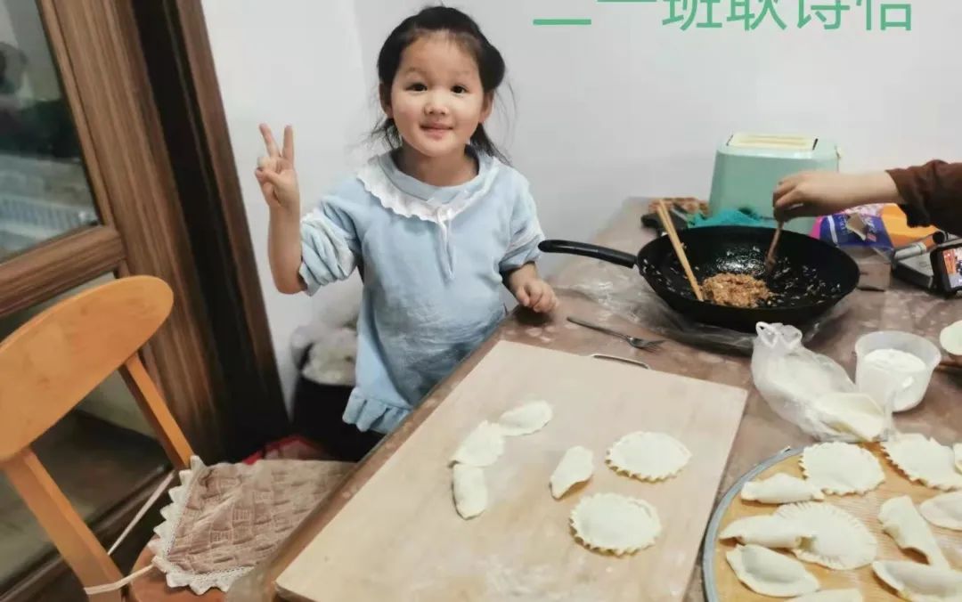 同學(xué)們剛剛拿到餃子餡和餃子皮就興奮的動(dòng)起手來(lái),包的都很不錯(cuò)呢。