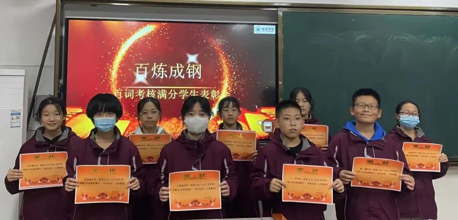 獲得“百詞考核”大比拼滿分學(xué)生名單 梁靖瑤,張子騫,張祺萱, 荊瑞芮,趙思彤,侯佳訊, 牛宇萌,張馨怡,李曉思, 張東姍,楊婧楠,盧一沖, 郭 驥,許諾巖,吳爍淼, 馮瑞鑫,馬韞涵,梁蘇利, 張佳欣,王梓銘,李宇澤,錫柯淼等