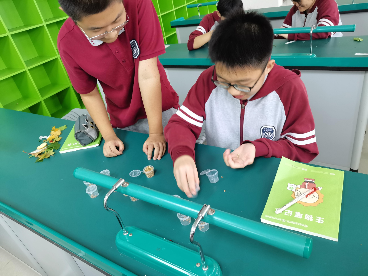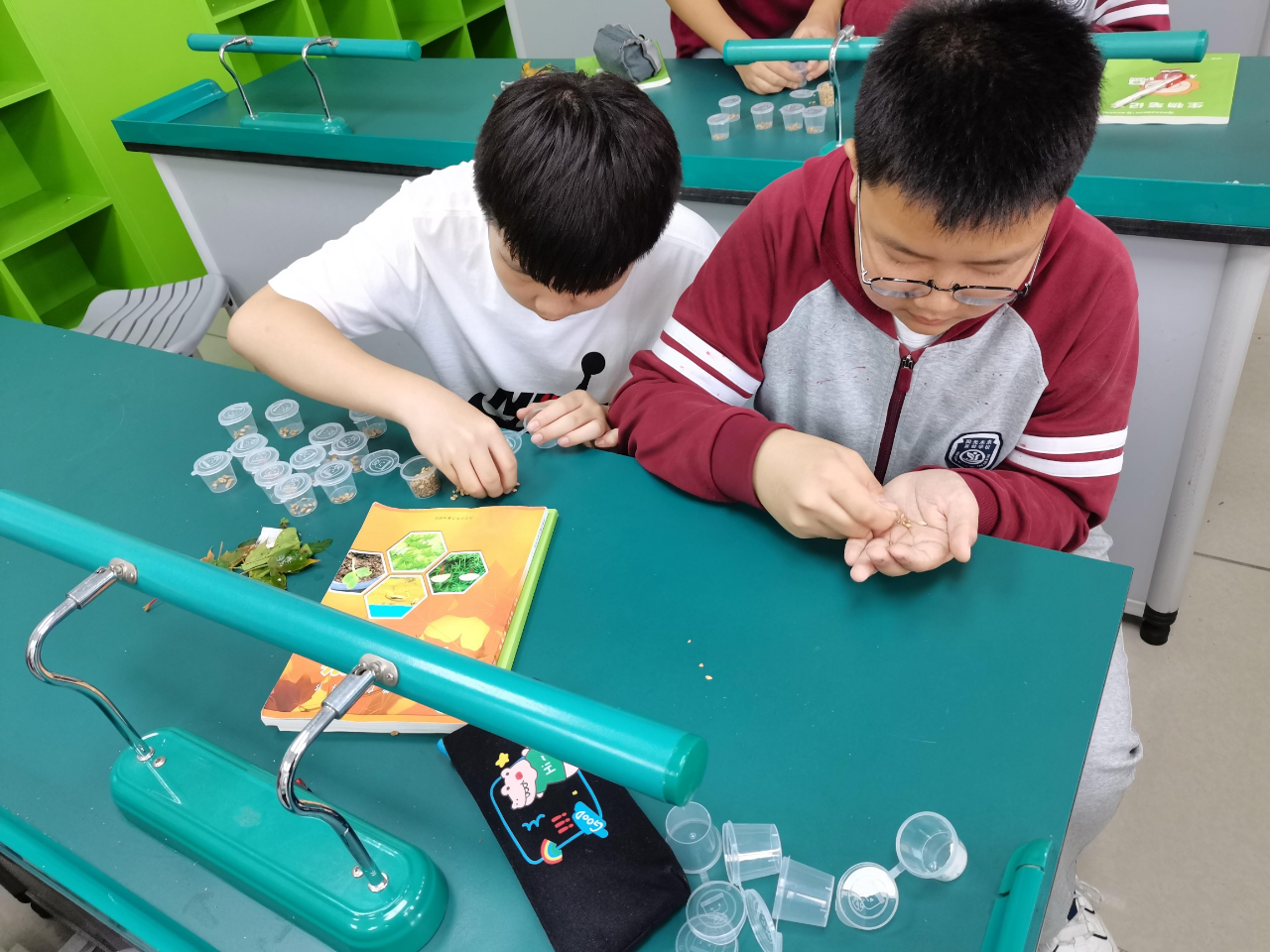 放假之前,生物社團(tuán)課的同學(xué)為同學(xué)們準(zhǔn)備好了可以帶回家的種子。