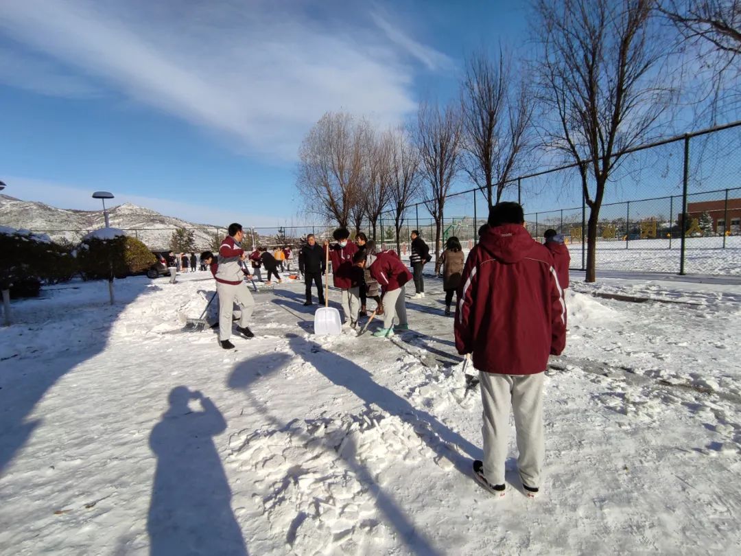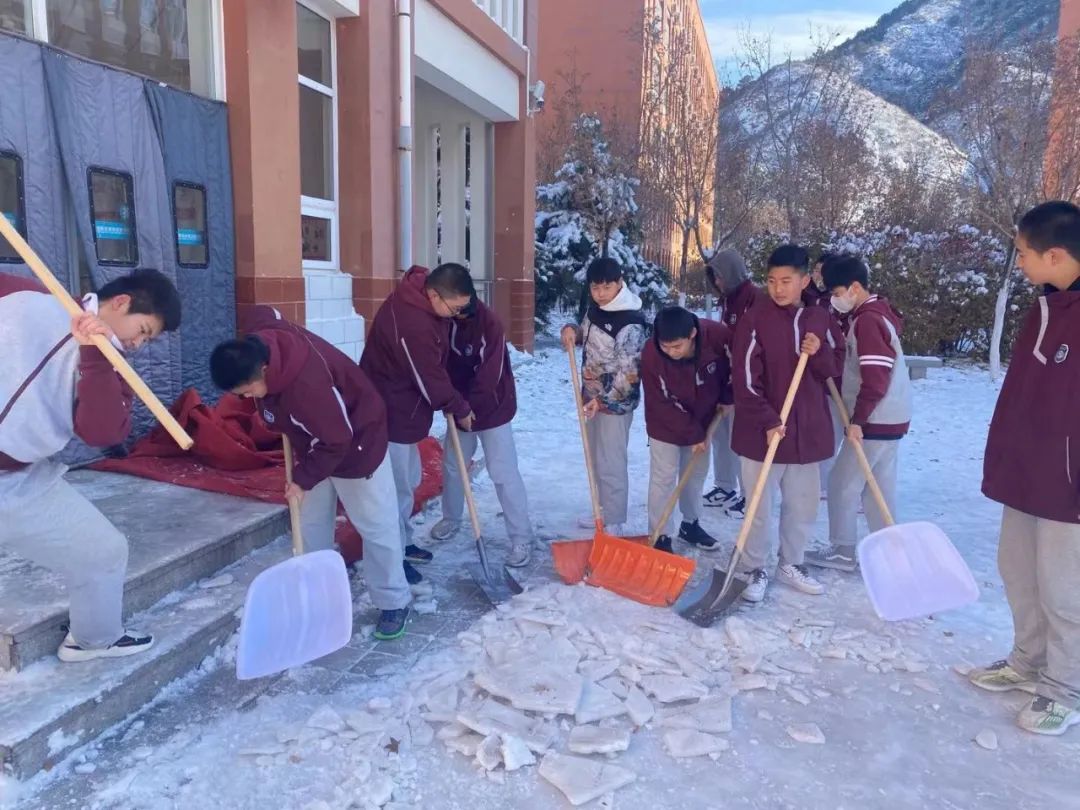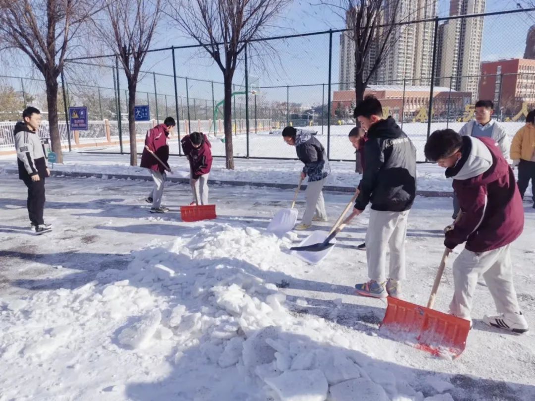 冷風中,大家熱情滿滿,充滿干勁。同學們積極主動、默契配合、分工協(xié)作。下雪天最美的不是雪景,而是在校園勞動中陽光學子的身影。