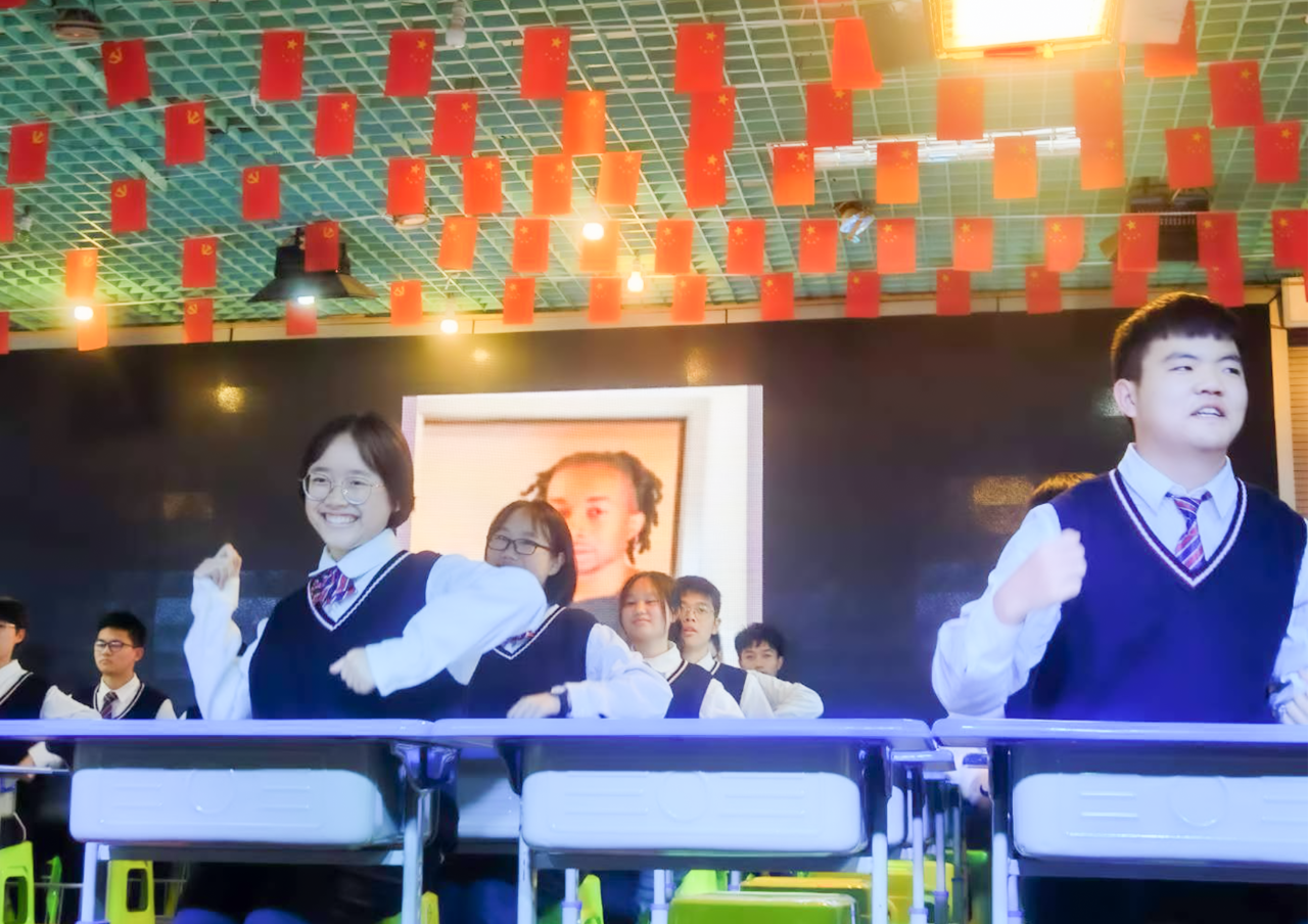 學(xué)生的桌舞表演既有借鑒更有創(chuàng)新,經(jīng)過(guò)師生的改編演繹,桌舞的舞態(tài)更優(yōu)美,形式更多樣。每班的創(chuàng)意編排各具特色,異彩紛呈,引人注目,動(dòng)人心魄。