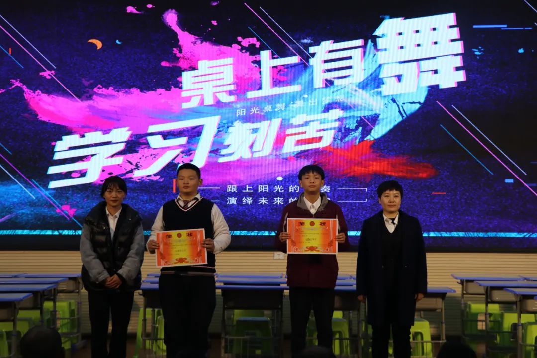 “桌上有舞,學(xué)習(xí)刻苦”為了豐富學(xué)生課間活動,強(qiáng)健學(xué)生體魄,預(yù)防學(xué)生疲勞。強(qiáng)化學(xué)生責(zé)任與擔(dān)當(dāng)、培養(yǎng)家國情懷,增強(qiáng)學(xué)生集體榮譽(yù)感、使命感和責(zé)任感。安順陽光未來學(xué)校初中部展開了活力四射的桌舞比賽。 桌舞比賽彰顯了同學(xué)們的美好品德,彰顯了一個(gè)個(gè)團(tuán)結(jié)向上、奮進(jìn)拼搏的集體,在他們身上,我們看到了勇氣和力量。同心協(xié)力——是他們彼此的默契,頑強(qiáng)拼搏——是他們永恒的信念,永爭第一——是他們不變的追求。 最后,獲得本次“桌上有舞,學(xué)習(xí)刻苦”桌舞比賽