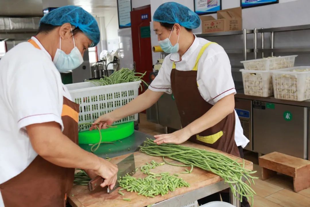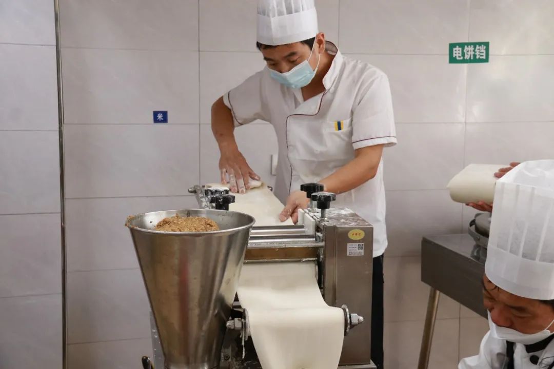 餐廳廚房的烹飪間,配菜間,主食庫,副食庫,洗碗間。來觀摩廚房師傅們的操作情況同時幫助大家了解一下我們的餐廳廚房環(huán)境。 進(jìn)入廚房,就看到忙碌的餐廳師傅們,他們每個人都有各自不同的分工,有負(fù)責(zé)炒菜的,有負(fù)責(zé)清洗,切菜的人員,有負(fù)責(zé)面食的人員們等,并且他們?nèi)膛宕骺谡趾兔弊樱┲?guī)范,用于保證食品安全衛(wèi)生。另外非常重要的就是各類廚房用品及器具的擺放,它們都分門別類的標(biāo)注好了位置,并且都有序的擺放在應(yīng)有的位置上。“毛巾不回家,我就不回家”細(xì)致到每個毛巾的用途,都有它特定的位置。另外毛巾、刀具、砧板等都有專用的消毒柜進(jìn)行清洗消毒,同學(xué)們使用的餐碗和餐盤筷子等等也是經(jīng)過了專業(yè)器材設(shè)備的的清洗和消毒。