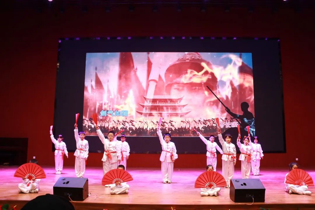 二年級(1)班 看!二(1)班的同學(xué)如雛鷹展翅,熱情奔放。似猛虎下山,虎虎生威。如凌波踏浪,又似蛟龍出水,震撼人心。他們在舞臺上的一招一式都表明了他們內(nèi)心對武術(shù)這項運動的癡情與向往,更表達了他們永不認輸?shù)臎Q心與頑強的追求。