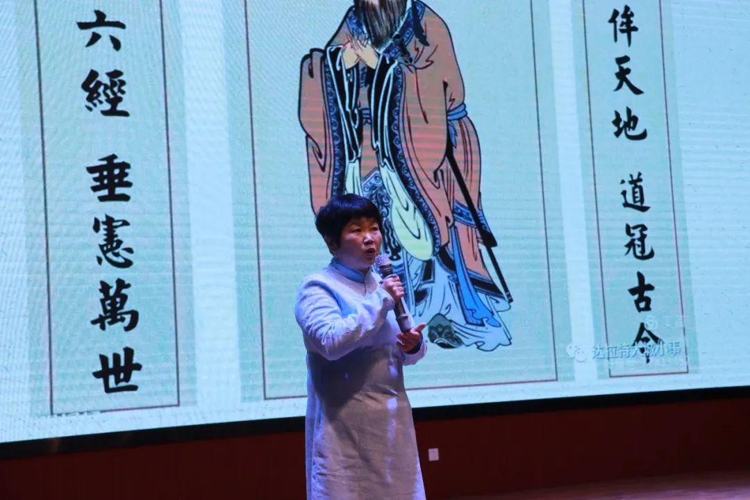 1向經(jīng)典國學(xué)致敬 “向經(jīng)典國學(xué)致敬,傳承中國文化精髓,打造書香中華”,德州未來國際學(xué)校以國學(xué)立校,注重中國優(yōu)秀傳統(tǒng)文化的繼承和發(fā)揚,除開設(shè)日常必修文化課程之外,還有豐富的素質(zhì)拓展課程,并開設(shè)了系列的國學(xué)課程。 為了進(jìn)一步弘揚和傳承中國傳統(tǒng)優(yōu)秀文化,弘揚國學(xué)文化經(jīng)典,11月20日下午,德州陽光未來國際學(xué)校報告廳舉行了小學(xué)部四~六年級集中進(jìn)行了《弟子規(guī)》第二講學(xué)習(xí)講座。此次講座,由小學(xué)部中高段年級主任劉欣娜老師主持,初中部語文學(xué)科主任尹主任講授。 開場前全體師生起立,一起背誦《弟子規(guī)》總序和“入則孝”部分。讀誦完畢之后,尹主任給同學(xué)們介紹了中國古代偉大的思想家、政治家、教育家,儒家學(xué)派創(chuàng)始人、“大成至圣先師”——孔子。通過宋代理學(xué)家朱熹所講“天不生仲尼,萬古長于夜”這句話,來向同學(xué)們講解孔子對于我們社會以及歷史發(fā)展的重要性。圣人之境,就是圓滿人格的典型。尹主任還告訴同學(xué)們怎么去接近圣人之道,怎么去讀圣賢之書,去探索圣人的境界。心懷崇敬與向往,這樣對生命才有振拔的作用。 會場上尹主任帶領(lǐng)大家行拜師禮,以虔誠之心來參拜這位古代先賢。一拜:自強(qiáng)不息。二拜:厚德載物。三拜:精忠報國。四拜:孝親尊師。五拜:世界大同。同學(xué)們在參拜圣像時都非常的認(rèn)真和專注。