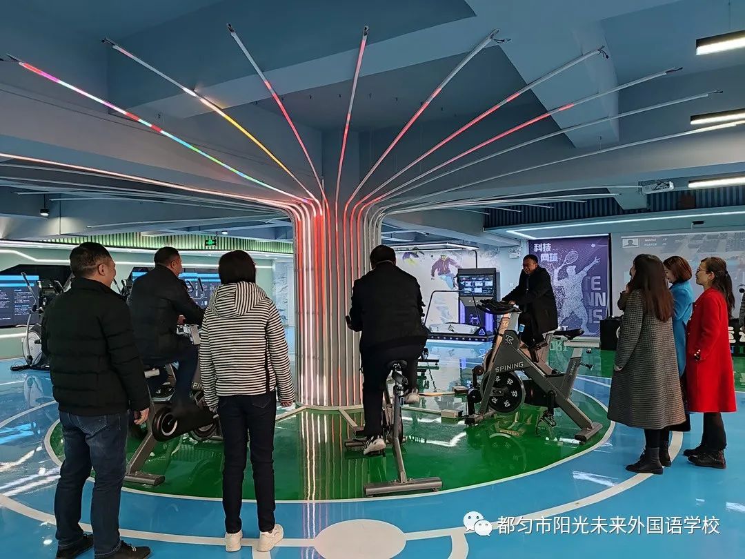 當(dāng)天下午,蒙校長一行在校區(qū)校長蒲登文、執(zhí)行校長董曉維、初中部校長萬昱的陪同下,先后參觀了我校圖書館、功能室、科技館、教學(xué)樓、學(xué)生宿舍、食堂、室內(nèi)體育館等地。大家邊聊邊看邊體驗,參觀過程中,校長蒲登文從陽光理念、陽光課程、陽光師資、陽光品格、陽光服務(wù)“五大特色”進行全面講解。