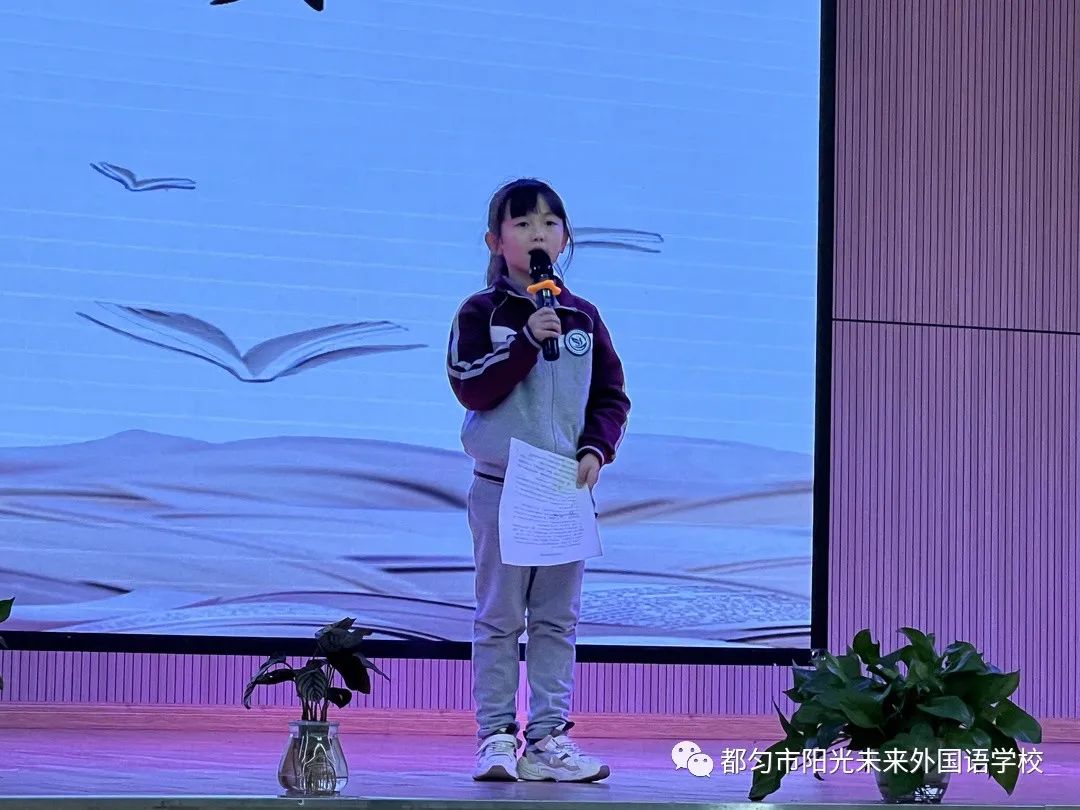 董校長強(qiáng)調(diào),都勻市陽光未來外國語學(xué)校是一方教育的熱土,更是一方學(xué)習(xí)的圣地,還是一方閱讀的高地,一個責(zé)任擔(dān)當(dāng)?shù)膱F(tuán)隊,一群熱愛學(xué)習(xí)的奔跑者正在宣言:讓閱讀成為一種習(xí)慣,讓閱讀成為一種能力,讓閱讀成為一種信仰,人生贏在閱讀,生命贏在閱讀,未來贏在閱讀!