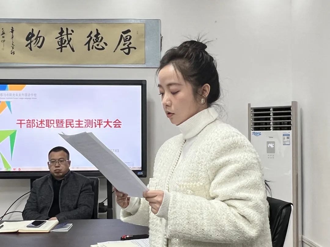 1月23日,我校干部述職暨民主測評大會(huì)在經(jīng)師樓三樓會(huì)議室舉行,校區(qū)總校長蒲登文、執(zhí)行校長董曉維、初中部校長萬昱,中層干部及全體教職工參加會(huì)議。