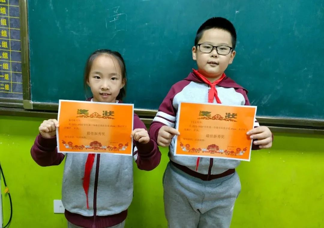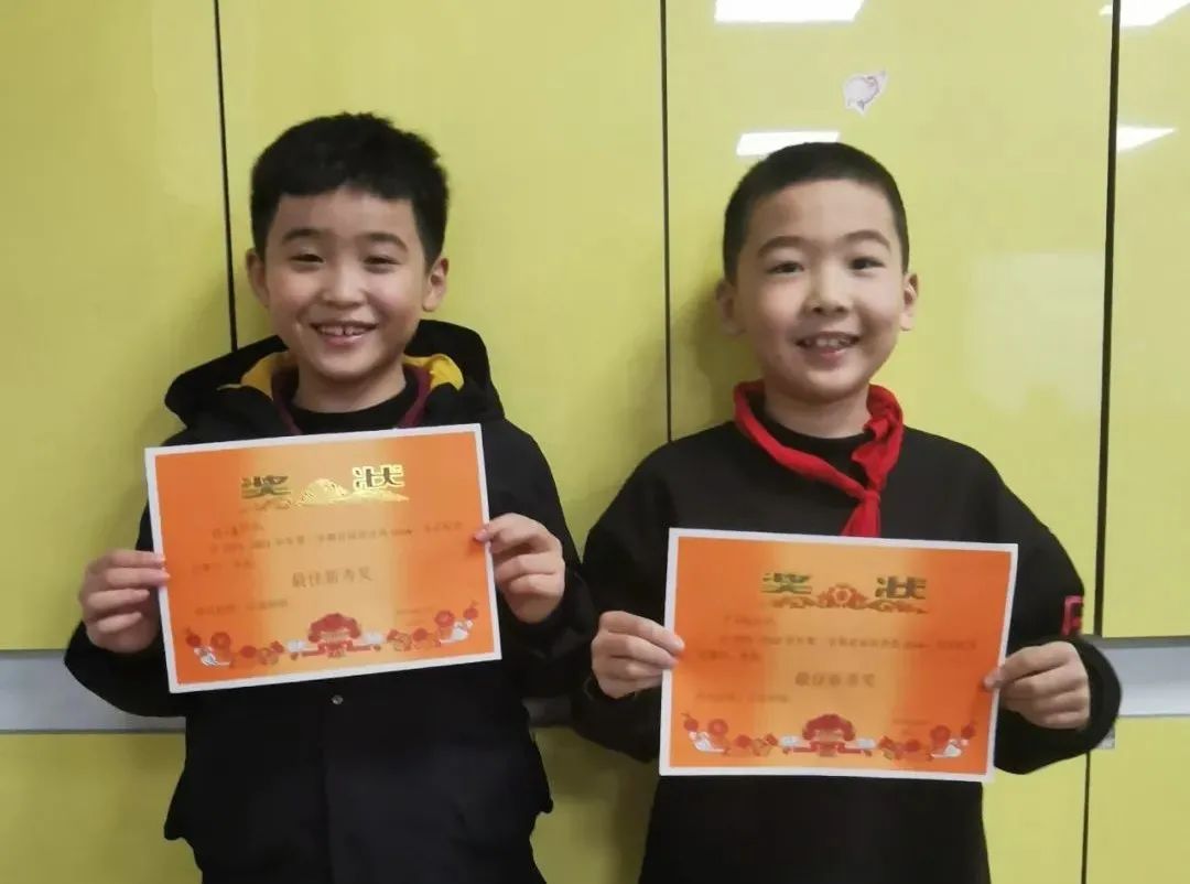 最佳新秀獎(jiǎng) 一(1)班:高睿澤、劉心怡;一(2)班:李秉遠(yuǎn)、郝若冰;一(3)班:趙韻迪、郝依漪。 二(1)班:汪梓萱;二(2)班:黃天澤;二(3)班:李沐聰;二(4)班:白梓熙。 三(1)班:宗子翔、楊子康;三(2)班:艾恬羽、董宗軒;三(3)班:王玉玨、董梓恒;三(4)班:鉏梓楠、于東正。