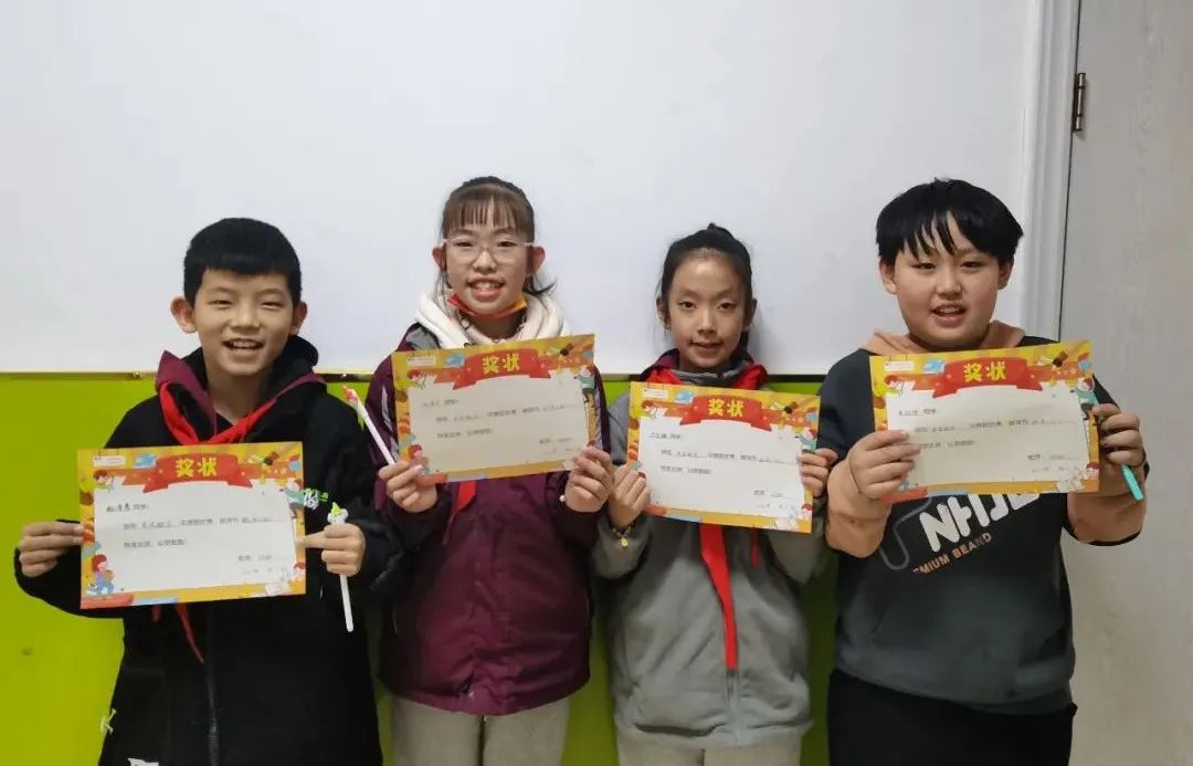四(1)班:郝碩洋、盧天辰、吳尚澤;四(2)班:毛沐辰、吳宇軒、崔容溪、趙文赫;四(3)班:馬路堯、謝依辰、潘泊汛、耿啟龍;四(4)班:柴泓宇、閆天怡、陳林漪、李姚涵;四(5)班:李墨琳、伊澤坤、楊夢(mèng)妮、劉雅涵。