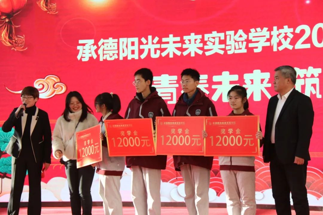 王校長(zhǎng)宣讀陽(yáng)光獎(jiǎng)學(xué)金表彰名單,趙校長(zhǎng)為獲獎(jiǎng)同學(xué)頒獎(jiǎng)。
