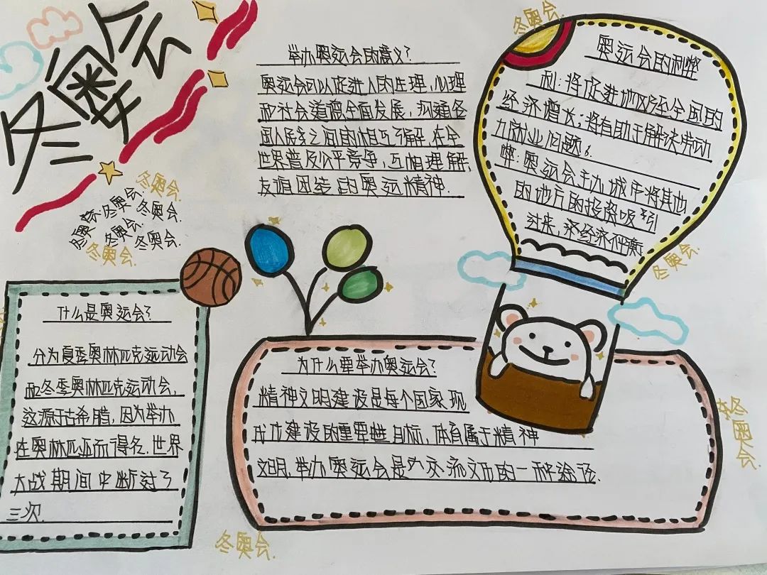 初中部的同學們在假期的德育作業(yè)中制作了冬奧會手抄報。