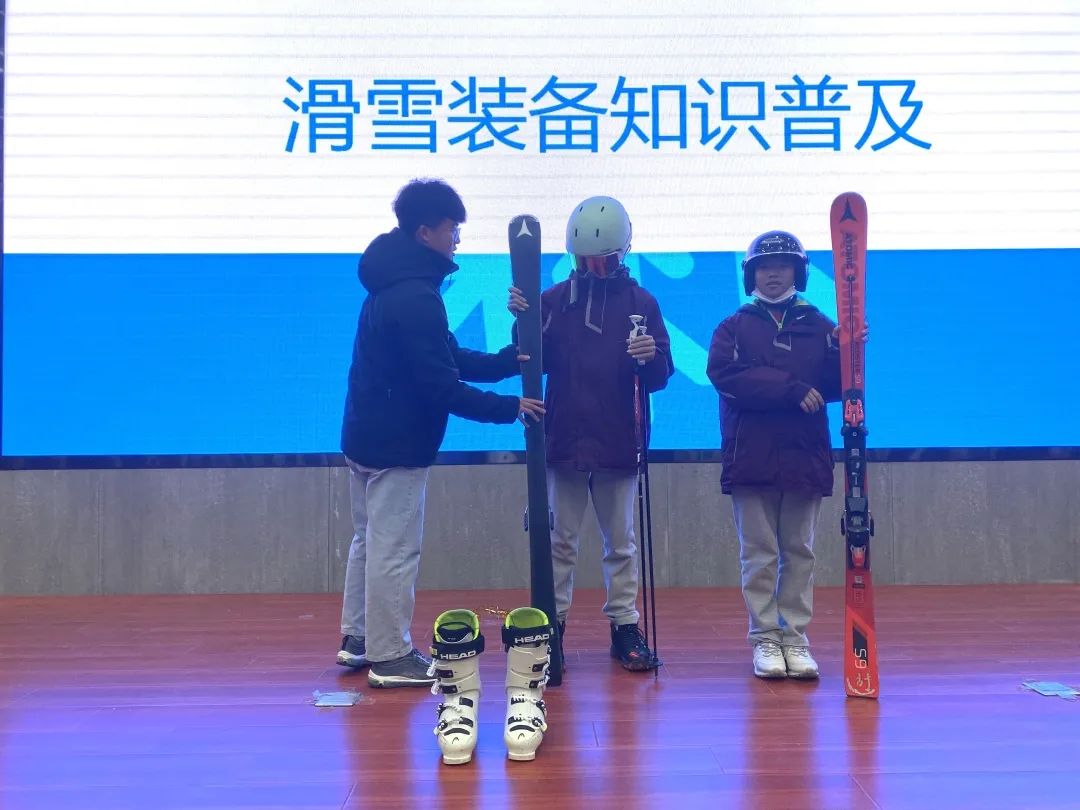 學校為同學們開展了冬奧會的知識講座,讓他們更了解北京冬奧會、比賽項目、滑雪裝備知識等。