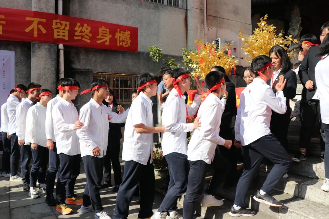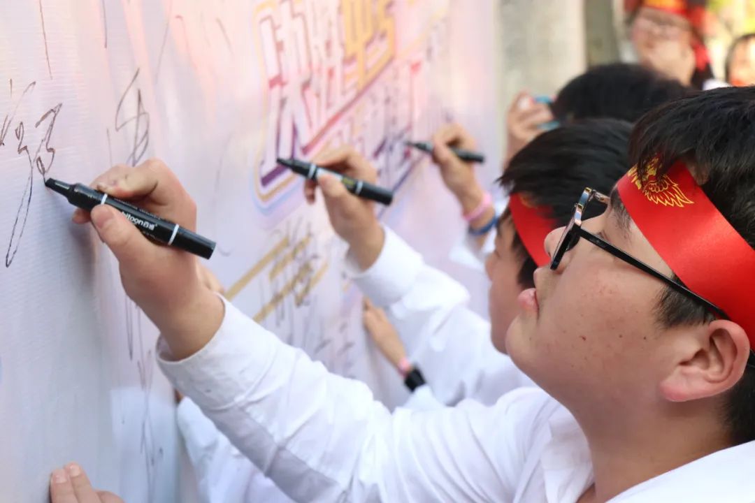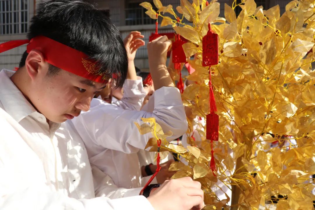 學(xué)子們與老師們相互擊掌,將寫有自己祝福許愿牌掛在許愿樹上,寓意6月高中。