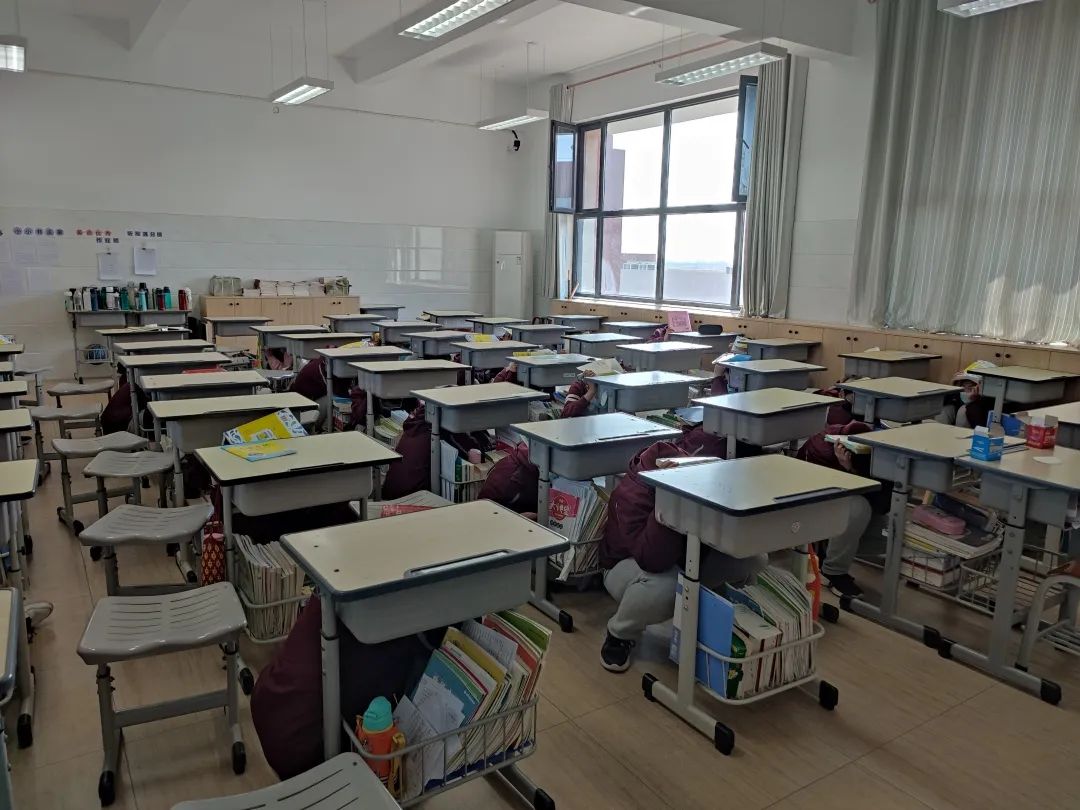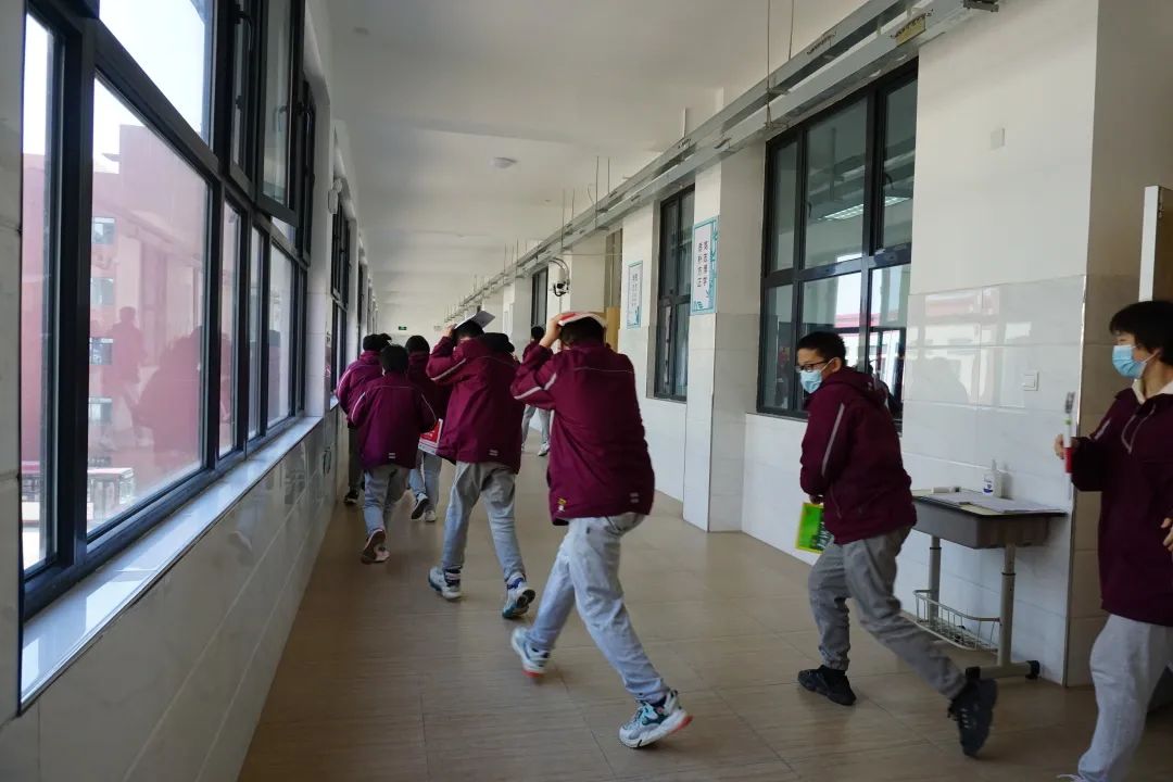 學(xué)生們迅速反應(yīng),躲在書桌下,用書本或手臂護住頭部,盡量蜷曲身體,用降低身體重心的姿勢蹲在書桌下。