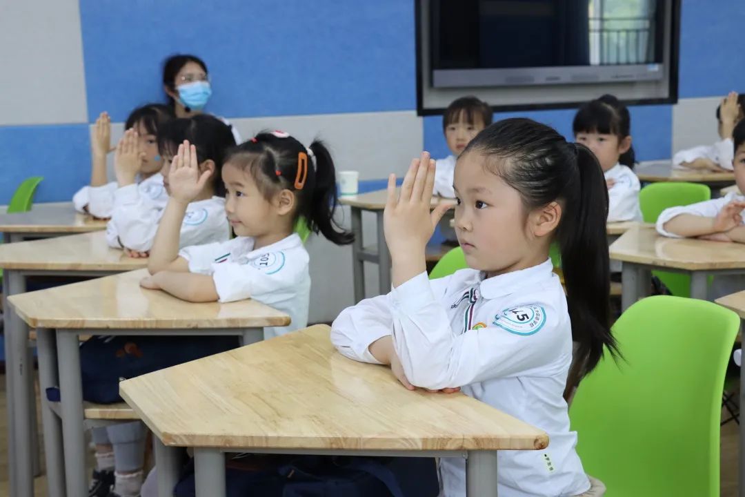 集體觀看了我校一、二年級(jí)小朋友經(jīng)典誦讀表演后,萌娃們還走進(jìn)課堂,親身感受了小學(xué)生們認(rèn)真聽講、積極回答問題的學(xué)習(xí)氛圍。趣味英語(yǔ)培養(yǎng)興趣,認(rèn)識(shí)圖形啟發(fā)思維,國(guó)學(xué)經(jīng)典提升素養(yǎng),有趣高效的課堂強(qiáng)烈地激發(fā)了孩子們對(duì)小學(xué)生活的美好向往和期待。