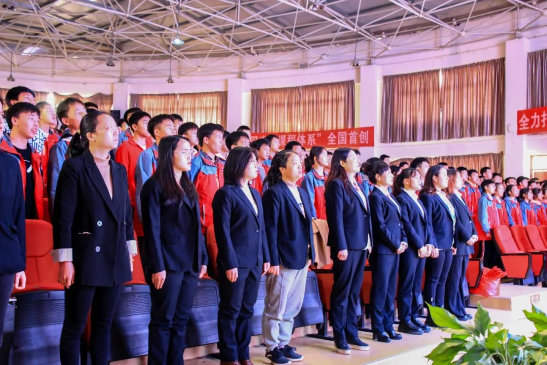 02主持人主持并宣讀誓師大會(huì)流程 在雄壯的國歌聲中,大會(huì)拉開了序幕。初三年級(jí)物理老師陳剛擔(dān)任大會(huì)主持人,他富有詩意和激情的臺(tái)詞讓人豪情滿懷。