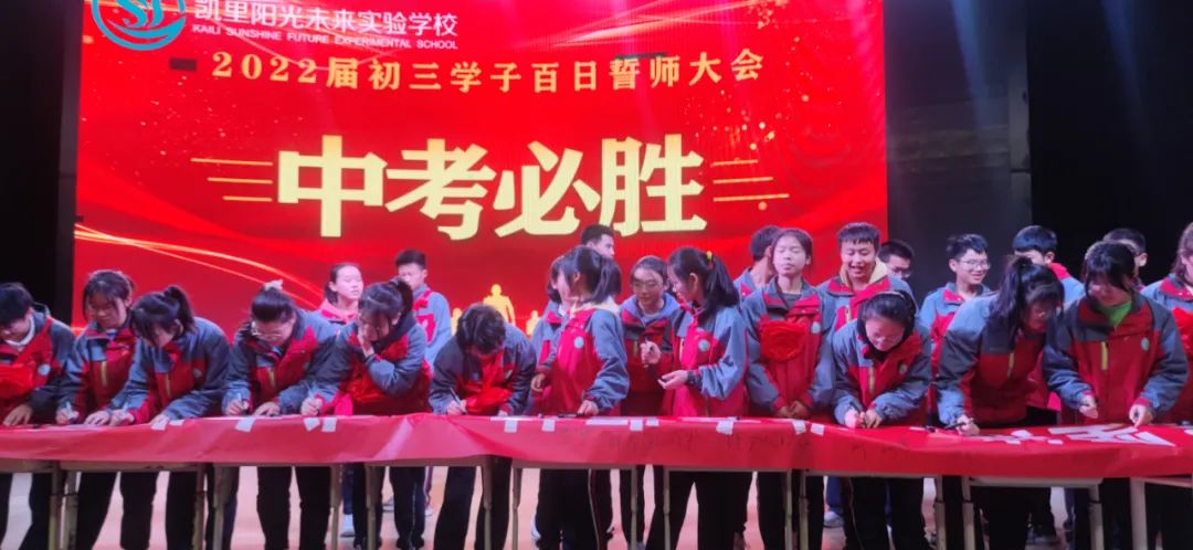 3月9日上午,凱里市陽光未來實(shí)驗(yàn)學(xué)校2022屆中考誓師大會(huì)在學(xué)校報(bào)告廳正式舉行,初三全體師生出席大會(huì),為百天沖刺吹響號(hào)角,為決戰(zhàn)中考吶喊助威。