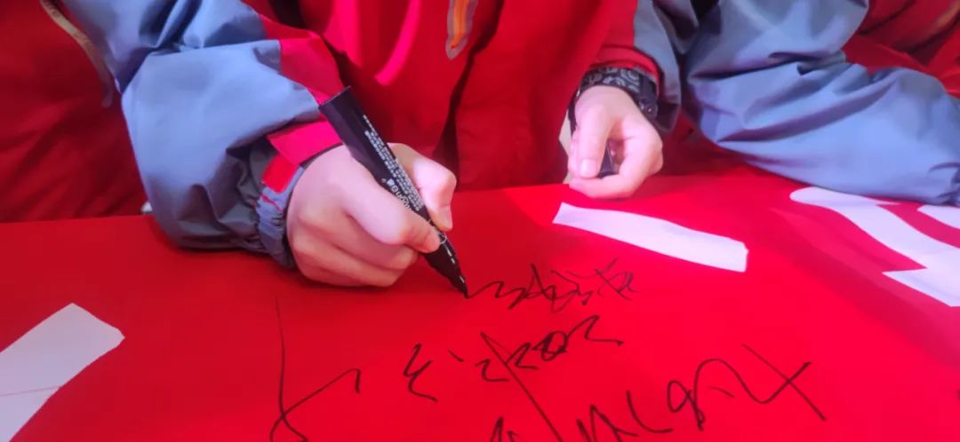 06橫幅留名,決戰(zhàn)中考 師生們分別在激勵(lì)橫幅上簽字,向著中考戰(zhàn)場(chǎng)最后沖刺85天,有戰(zhàn)必應(yīng),戰(zhàn)之必勝!