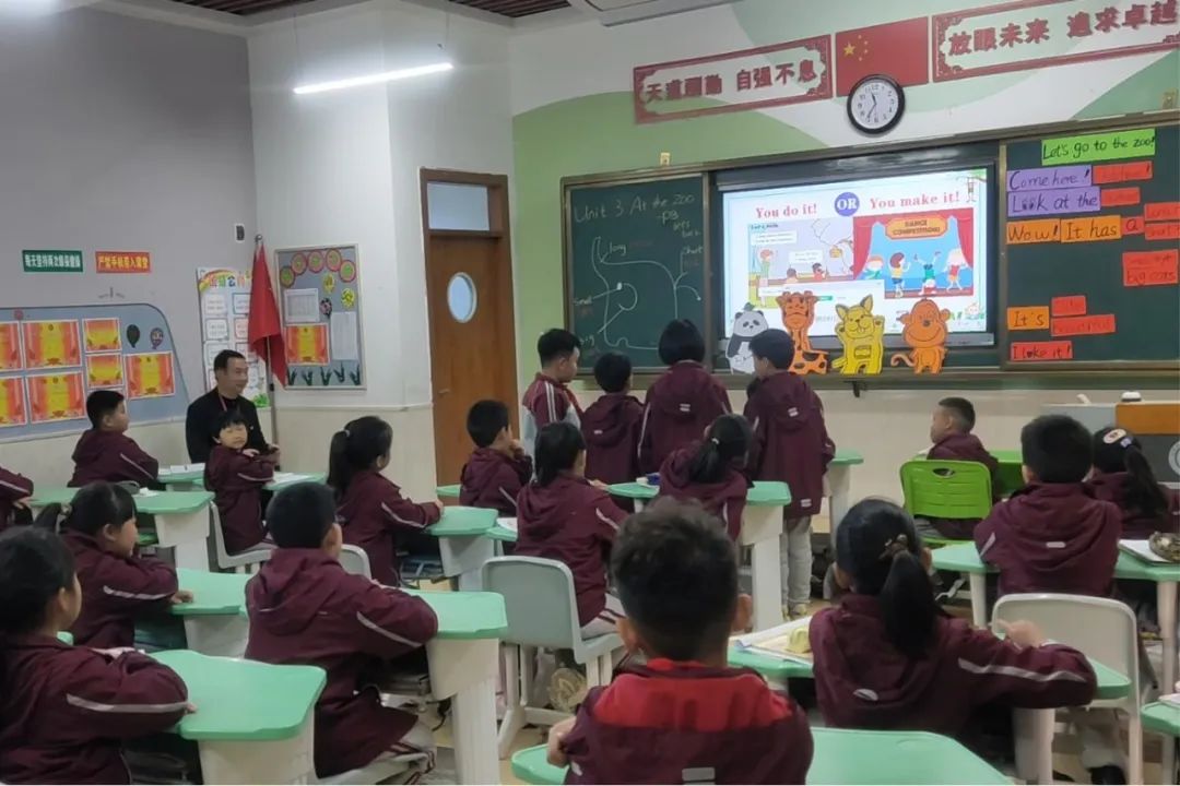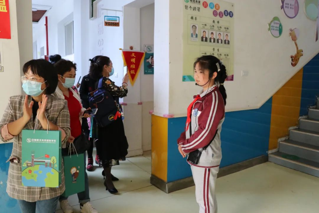 進(jìn)入教學(xué)樓,經(jīng)過走廊,走廊墻面上孩子們富有創(chuàng)意的作品吸引了家長(zhǎng)們的眼球。從打開的門往里看,家長(zhǎng)們被陽(yáng)光學(xué)子積極活躍的課堂氛圍所震撼。