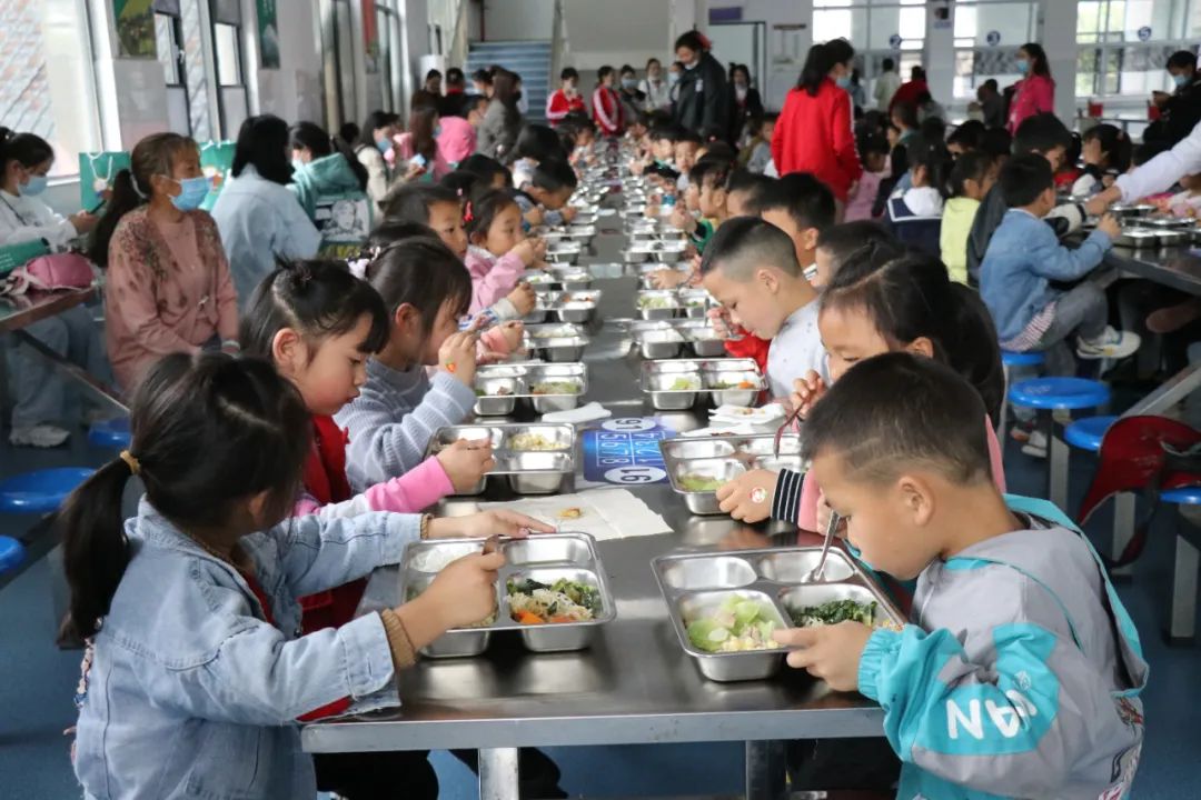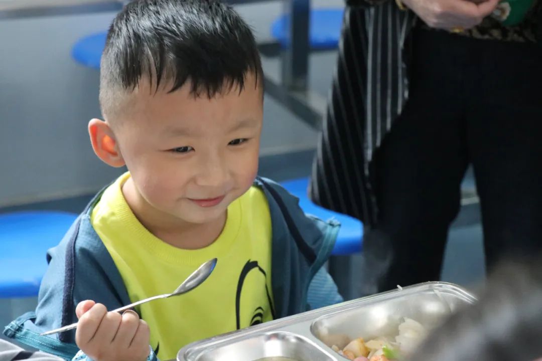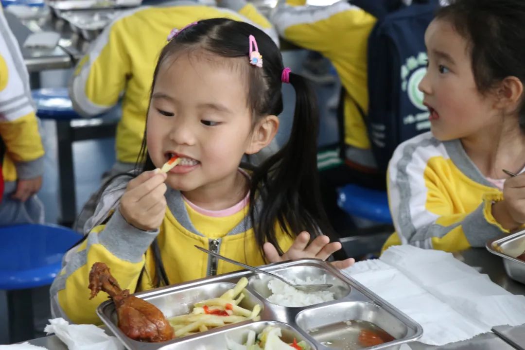 孩子們吃著營(yíng)養(yǎng)豐富的午餐,露出了甜蜜的笑容。