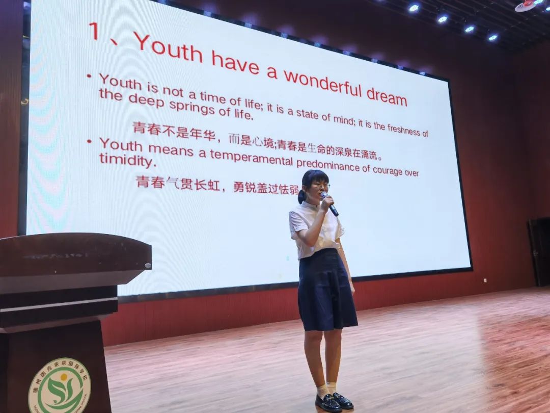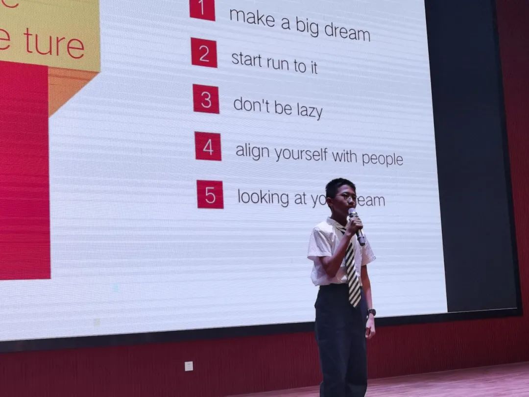 21位同學們的比賽成績也陸續(xù)公布,初中部英語組長馬然老師也對此次比賽進行了總結(jié): Thank you, all students! Thank you very much! You really did a good job! I want to say:congratulations! Imagine what could be accomplished if the dreams of China’s 1.4 billion individuals could be unleashed. Imagine what could happen. Each of you here has a power of the individual within you, you have the power of your dreams within you, and these are tremendous powers. You are young, you are educated, and you are the very best China has to offer. My young Chinese friends, I believe in your dreams, I believe that you can achieve them, and I believe you can make a difference, a big difference. All you have to do is creat the action and commit, and say: Let’s do it. Go out and do it. I am asking you. Do it for yourself, do it for China, and do it for the good of the world. Thank you very much for listening! 親愛的孩子們,非常感謝你們的精彩展示!你們做得很棒!恭喜你們! 設想一下,如果全中國14億人民都能夠放飛各自的夢想,將會取得多大的成就。設想一下美妙的前景。你們每一個人都有改變的力量,都有夢想的力量,這些力量是無窮的。你們朝氣蓬勃,你們學識豐富,你們是中國培養(yǎng)的精英。我年輕的朋友們,我相信你們的夢想,我相信你們可以夢想成真,我相信你們可以做出改變,巨大的改變。你們要做的只是為之奉獻,你們要做的就是把夢想付諸行動并全心投入,對自己說:“讓我去做吧。”去行動吧,為你們自己,為中國,為世界的利益去行動!感謝大家! 最后本次比賽初中學部校長也做了本次活動總結(jié): 老師們,親愛的同學們: 大家好!看到今晚舞臺上的精彩英語演講,我感到非常高興。我看到了陽光學子們積極向上的精神,感受到了同學們追逐夢想的勇氣和信心,更希望同學們能夠堅守初心,不懈努力,直到夢想成真! 同學們知道,英語是通往世界的通用語言,參賽的同學們大膽運用英語勇敢展示自我、描述自己的夢想和追夢的計劃,從此,也為我們走出國門獲取更多的人生體驗奠定了基礎。我想借此機會簡要做一下總結(jié): 首先,我認為每一次成功的比賽都源于大家對活動的重視。我們每個選手都進行了認真充分的準備,積極參與,在演講中大膽展示自我,我也曾看到有些同學最近一段時間充分利用課間、就寢前的一點點有限的時間加緊準備。機會總是會光顧有準備的人,我相信通過這次參與,這些同學對英語的學習有了更深的體會。 其次,同學們這次演講的內(nèi)容都很生動深刻,注重與生活實際結(jié)合,這是非常難得的。學以致用,才會為將來做好準備,語言更是我們不可或缺的交流工具,所以,英語要生活化,以后在生活中也要盡量地用英語進行交流,只有創(chuàng)設了語言情景,英語的魅力才會凸顯出來。我們不能只為考試而學習英語,更不能學到最后是啞巴英語。 第三,演講中,同學們?nèi)谌胝媲?,精神飽滿,聲情并茂,做到了以聲傳情。“感人心者,莫先乎情”。只有有情感的東西才能打動人,我們學習的不僅僅是知識,更是體現(xiàn)了一個人的情感、態(tài)度和價值觀,這也是學科素養(yǎng)。 最后,我想跟大家說的是,有形的比賽剛剛閉幕,無形的比賽時時都在上演。今天,能夠站到舞臺上演講的同學們,就已經(jīng)贏了!結(jié)果并不重要,重要的是敢于參與,勇于表現(xiàn),不斷超越自我的過程。這種精神本身就非常值得贊揚。 期末將至,愿同學們堅持不懈,發(fā)奮圖強。展胸中豪情,書青春夢想,取得優(yōu)異的成績回報所有愛你的人! 謝謝大家!