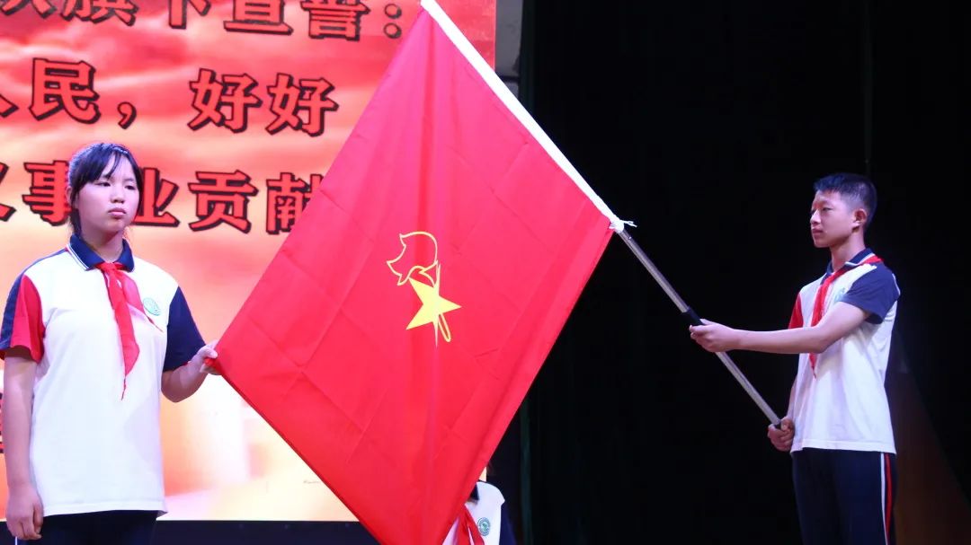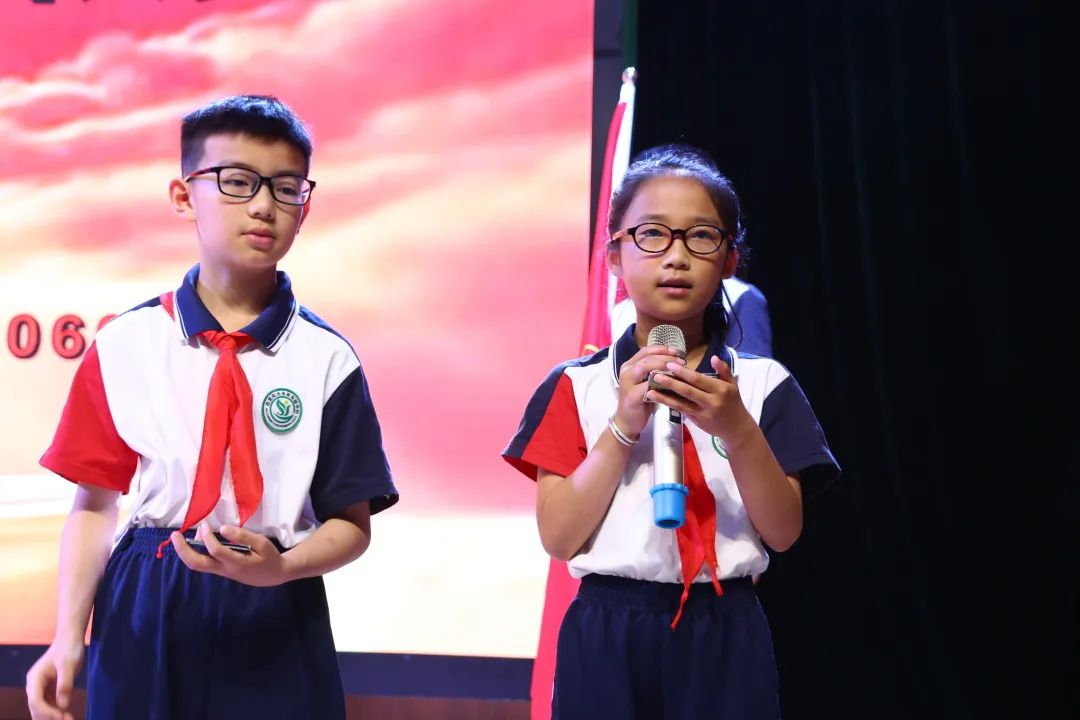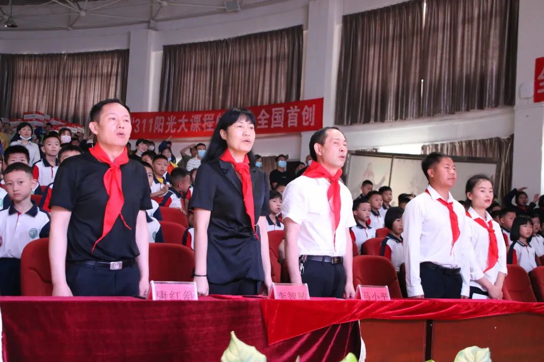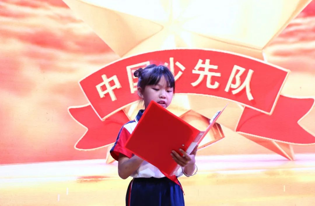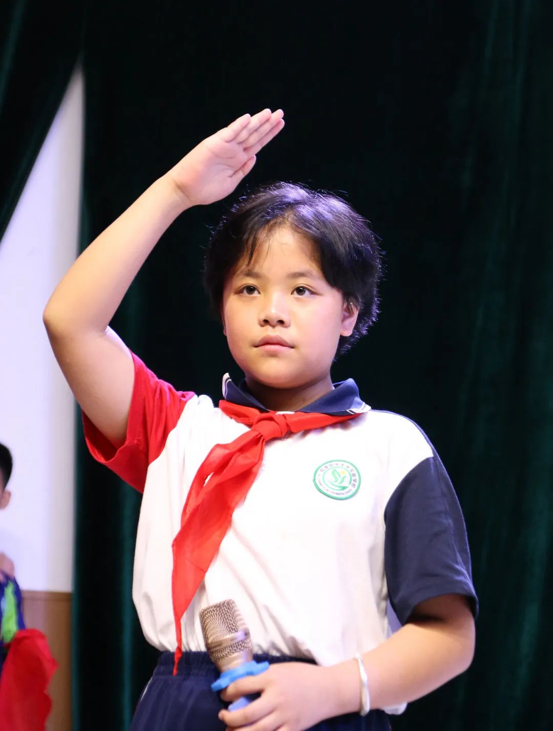 伴隨著雄壯有力的出旗曲,入隊(duì)儀式拉開(kāi)序幕,全體隊(duì)員高唱《中國(guó)少年先鋒隊(duì)隊(duì)歌》,清脆嘹亮的童聲表達(dá)著孩子們的自豪和喜悅。